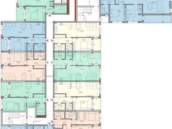 Сградата разполага със 111 апартамента – добре балансиран микс от двустайни, тристайни и по-просторни многостайни жилища. Разпределенията са проектирани така, че да осигурят максимално функционални дневни зони с кухненски бокс, комфортни спални, удобни бани и практични килери и преддверия. Част от жилищата са с по-големи площи и възможност за обособяване на допълнителни зони за работа или почивка, което прави сградата подходяща както за млади семейства, така и за купувачи, които търсят по-висок клас градско жилище.