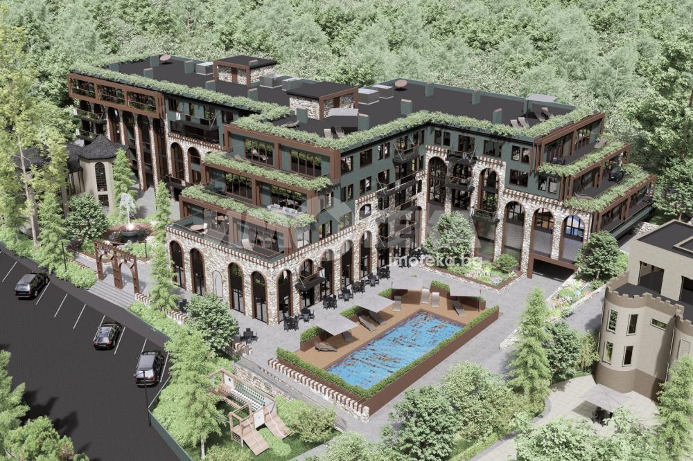 Пететажна жилищна сграда в затворен тип комплекс. В строежа на сградата ще бъдат вложени висококачествени материали: облицовка с естествен камък "Гнайс", стенна декорация: декоративна мазилка, дървена облицовка, немска 5-камерна дограма, външна изолация: по проект; външни входни врати: метални, блиндирани. Намира се в защитен район, разполагащ със собствено езеро, гора, спа зона, зона за отдих и активен спорт и др.