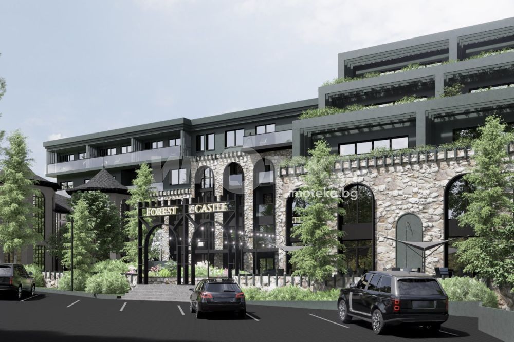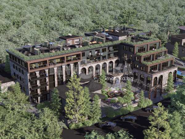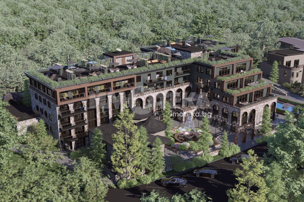 Пететажна жилищна сграда в затворен тип комплекс.  В строежа на сградата ще бъдат вложени висококачествени материали: облицовка с естествен камък "Гнайс", стенна декорация: декоративна мазилка, дървена облицовка, немска 5-камерна дограма, външна изолация: по проект; външни входни врати: метални, блиндирани. Намира се в защитен район, разполагащ със собствено езеро, гора, спа зона, зона за отдих и активен спорт и др.