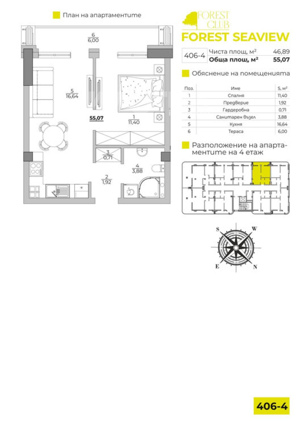 Двустаен тухлен апартамент в сграда в строеж. Жилището се състои от дневна с кухненски бокс, спалня, баня с тоалет, килер, тераса и входно антре. Forest SeaView е жилищен комплекс от 5-етажни сгради, разположен на 15 минути от най-добрите плажове на Варна. Апартаментите в комплекса, ще бъдат с морска и горска панорама.