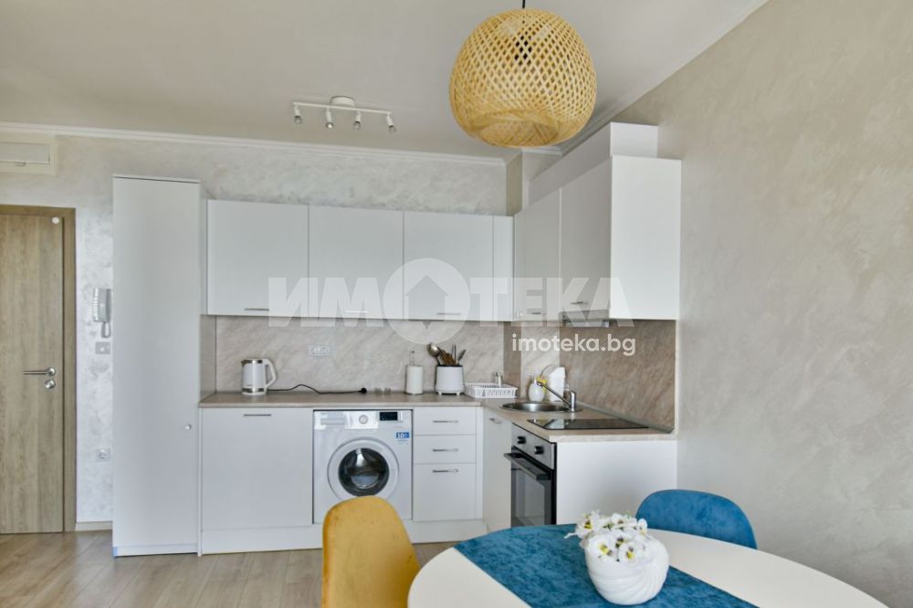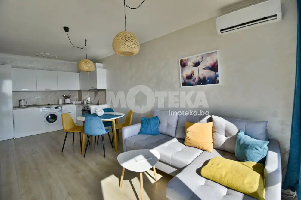Стилно обзаведен апартамент, нов, панорамен в близост до морския бряг. Разполага с една спалня, санитарен, възел, тераса, уютна дневна. В наемната цена е включено паркомясто. Отдава се дългосрочно.