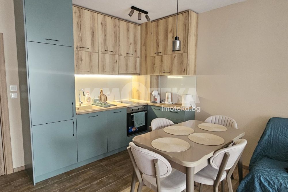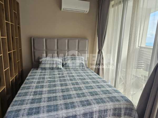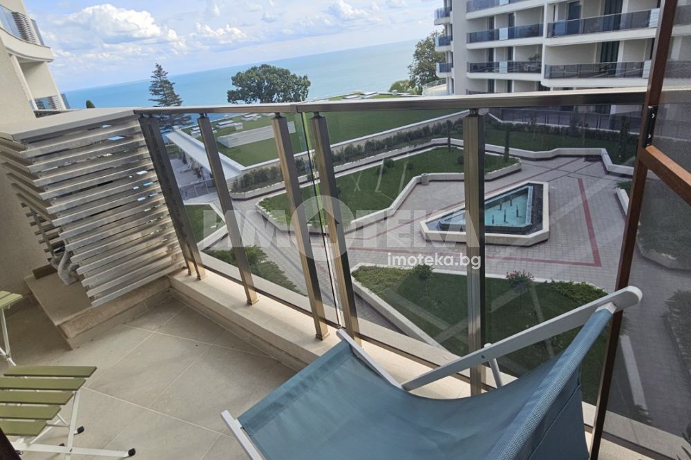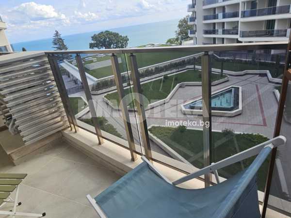 Апартамент в комплекс с необятна морска панорама сред изключителна тишина и спокойствие. Място, което Ви пренася в един морски рай и Ви доставя удоволствие за незабравими дни със своя комфорт, зеленина, плувен басейн за Вас, басейн за Вашите деца и СПА зона с джакузи/ целогодишна/, парна баня и сауна. Жилището е разположено на трети етаж с гледка към морето, еднопространствено и се състои от голямо антре (15,4кв.м.) с вграден гардероб, баня и тоалетна (4,7 кв.м), дневен кът с трапезария и кухненски бокс, в който има обособена спална част (31.2 кв.м), тераса (6.6 кв.м). Южно изложение. Отопление с климатици-мултисплит система. Апартамента се продава напълно обзаведен и оборудван с всичко необходимо. Прилежащо избено помещение от 3.30 кв.м.