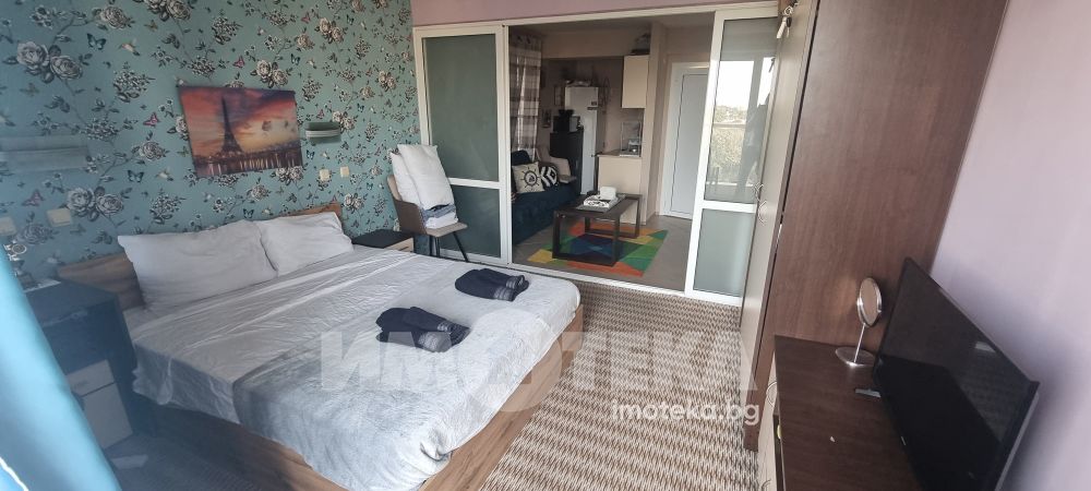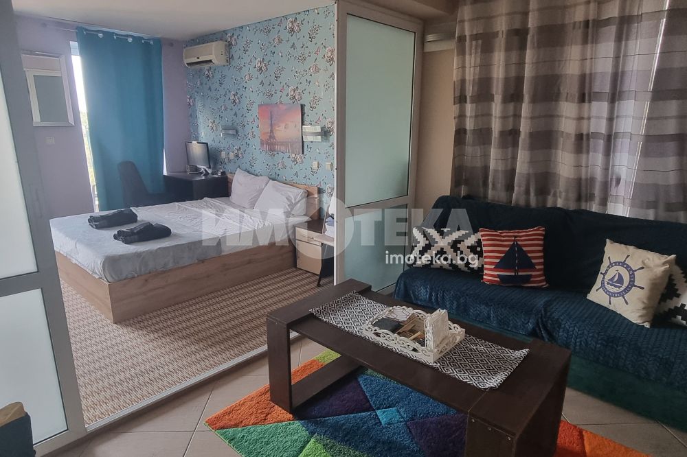 Предлагaме Ви страхотен двустаен апартамент в комплекс ''Никеа' парк'. Дневна с кухненски бокс, спалня, баня с тоалет и тераса с гледка към морето Напълно обзаведен и обурудван. Изключително светъл и топъл апартамент. Жилището е подходящо за нощувки и отдаване под наем.
