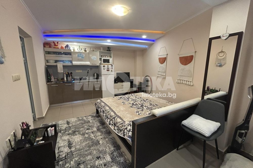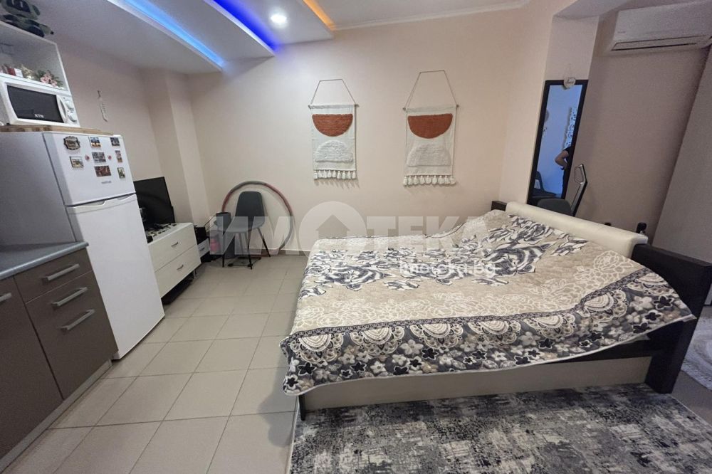 Предлагаме Ви едностаен обзаведен апартамент в района на м.Ален Мак .Имота се намира в затворен комплекс "Розали" на партерно ниво. Състои се от кът с кухненска част , кът за спаня с легло спалня и баня с тоалет. Имота се отоплява и охлажда посредствном климатик.