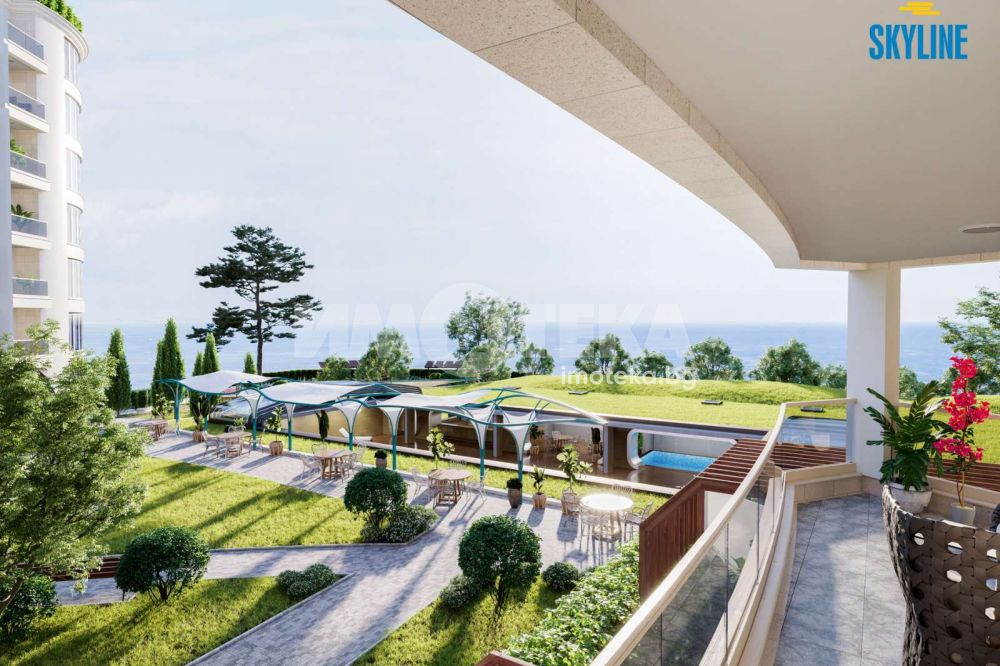 Тристаен апартамент в комплекс с необятна морска панорама сред изключителна тишина и спокойствие. Място, което ви пренася в един морски рай и ви доставя удоволствие за незабравими дни със своя комфорт, зеленина, голям плувен басейн за вас и басейн за вашите деца. Жилището е разположено на партерен етаж и се състои от голяма всекидневна, просторна спалня със собствена баня и тоалет, втора спалня, баня и тоалетна, входно антре и голяма тераса. Комплекса ще ви изненада с дизайнерска архитектура, луксозни общи части, комфортни апартаменти и много зеленина. Възможност за завършване до ключ!