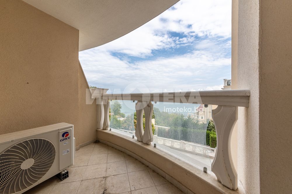 Панорамен тристаен апартамет, състоящ се от две спални, дневна, баня с тоалет и килер. Апартаментът е в завършен вид, изцяло обзаведена кухня с ел. уреди, оборудвана баня с тоалет, три климатика. Панорамата е фронтална от дневната и едната спалня. Имотът се намира на брега на морето.