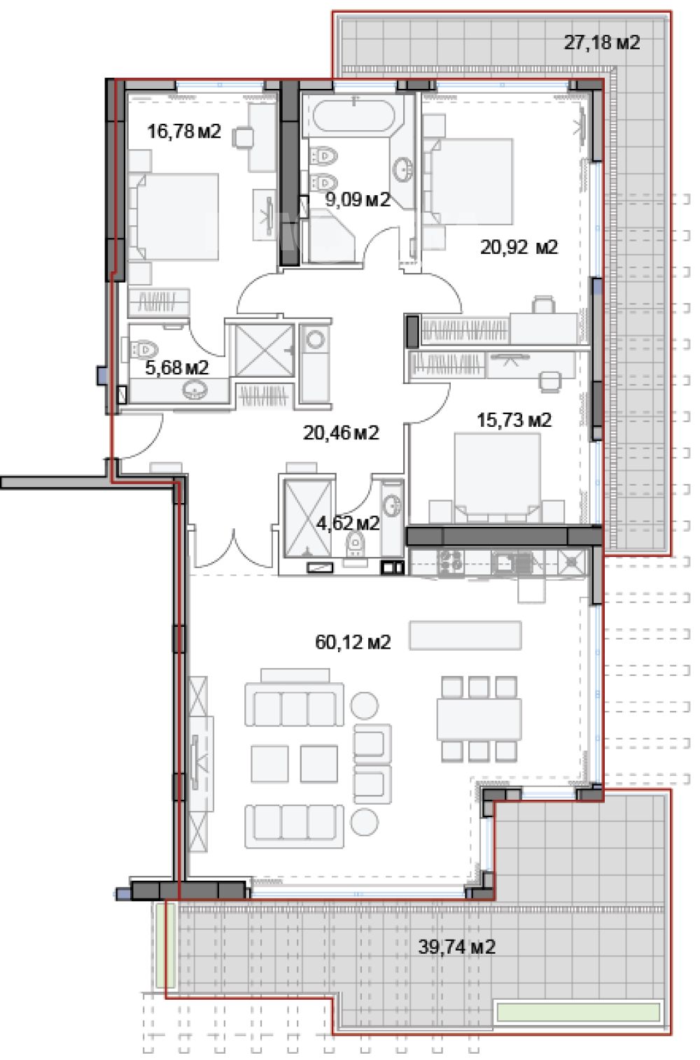 Предлагаме за продажба многостаен апартамент. Жилището се състои от голяма всекидневна с кухненски бокс, три големи спални, три санитарни помещения и панорамна тераса.