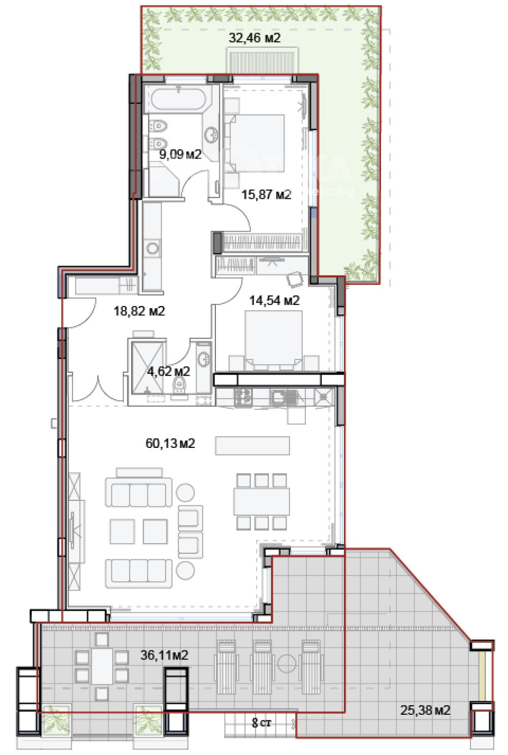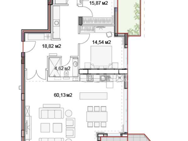 Предлагаме за продажба тристаен апартамент. Жилището се състои от голяма всекидневна с кухненски бокс, две големи спални, две санитарни помещения и панорамна тераса.
