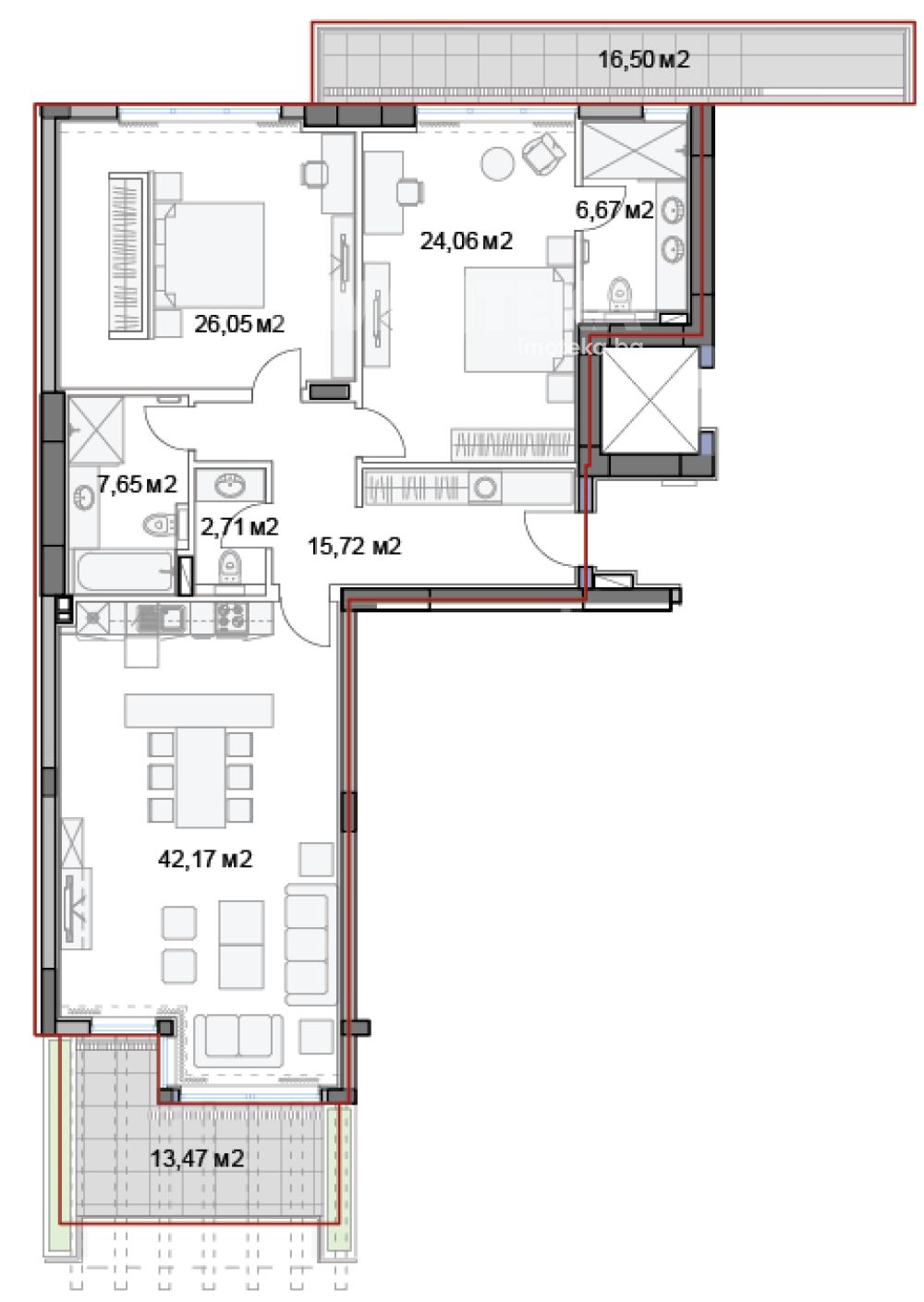 Предлагаме за продажба тристаен апартамент. Жилището се състои от голяма всекидневна с кухненски бокс, две големи спални, три санитарни помещения и панорамна тераса.
