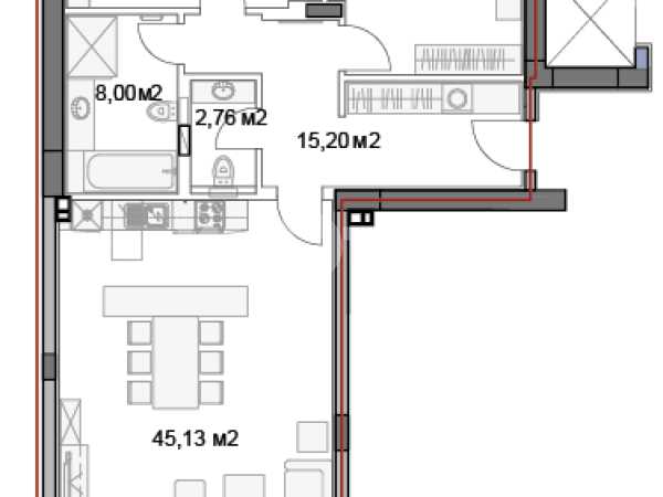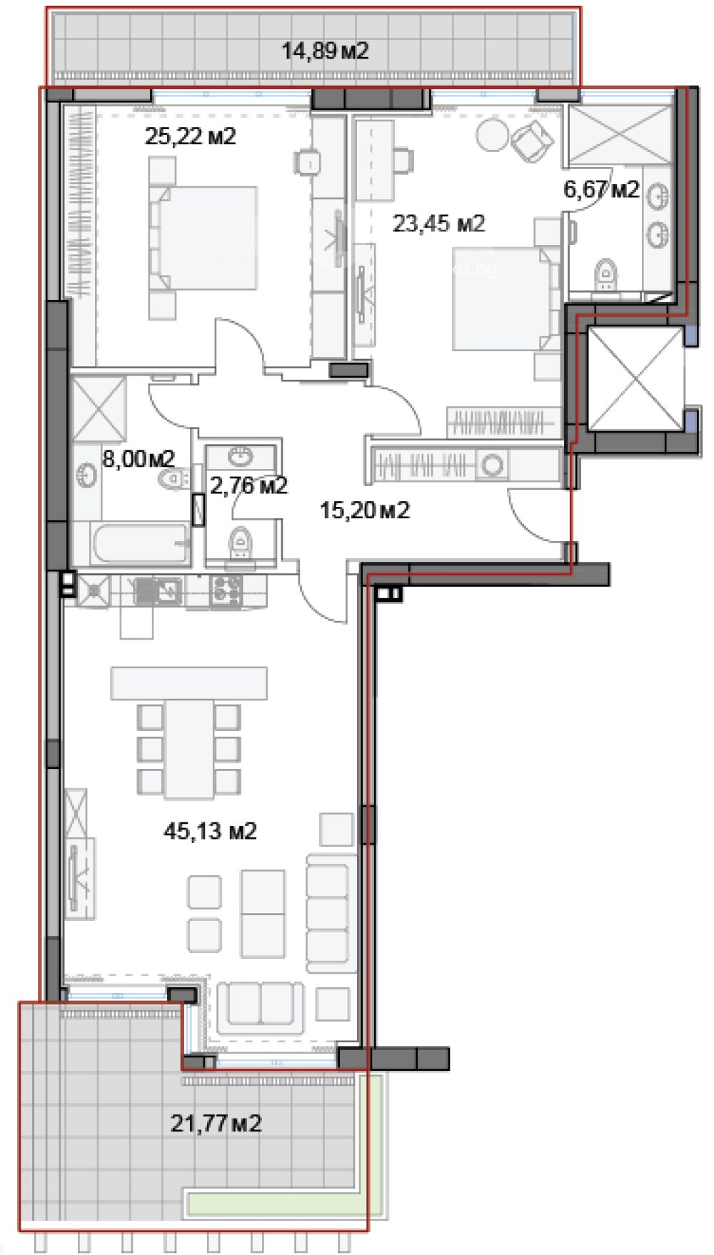Предлагаме за продажба тристаен апартамент. Жилището се състои от голяма всекидневна с кухненски бокс, две големи спални, три санитарни помещения и панорамна тераса.