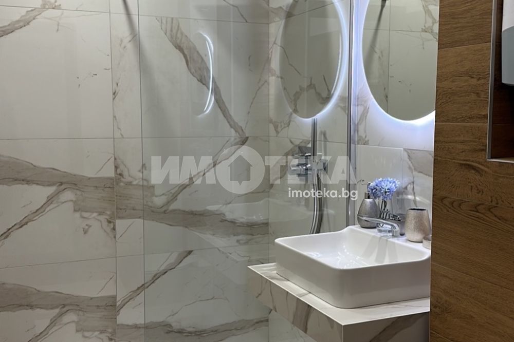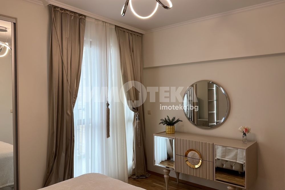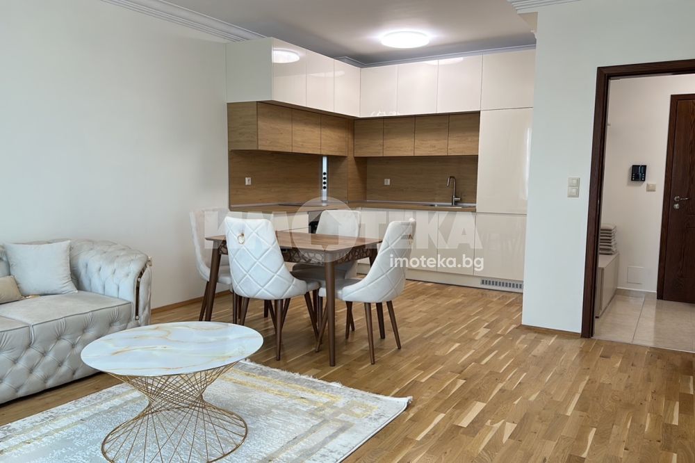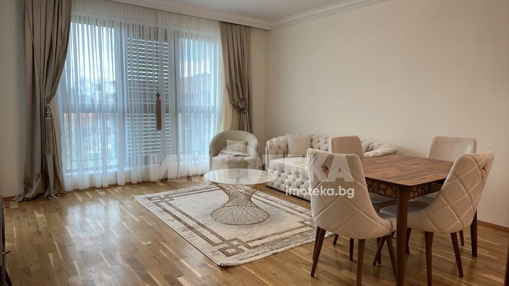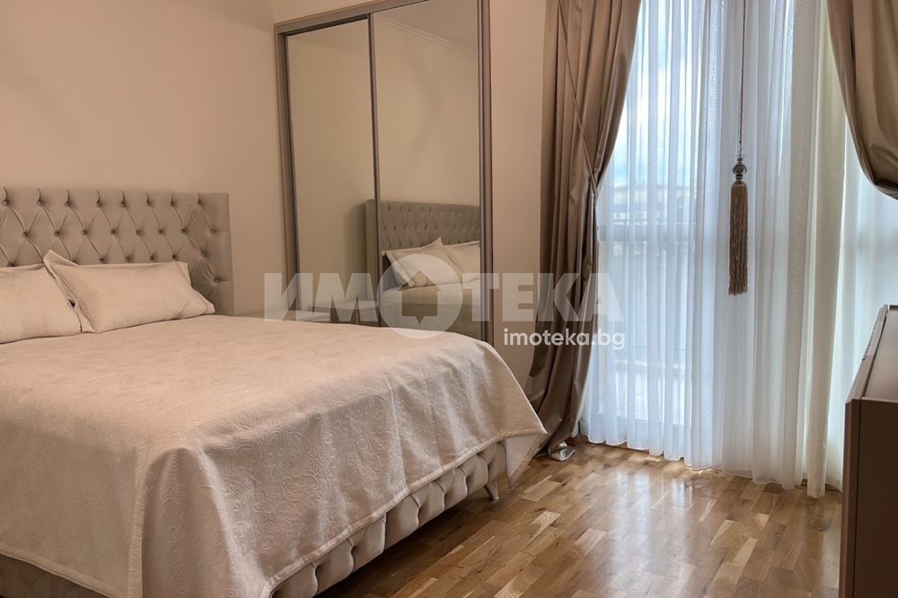 Луксозно обзаведен апартамент, изключително просторен, светъл и функционален. Жилището е разположено на трети жилищен етаж в представителна сграда в затворен комплекс. Състои се от антре, светъл и просторен, дневен тракт, кухненска част, спалня, баня с тоалет, тераса с югоизточно изложение. Имотът е новообзаведен. В цената е включено подземно паркомясто