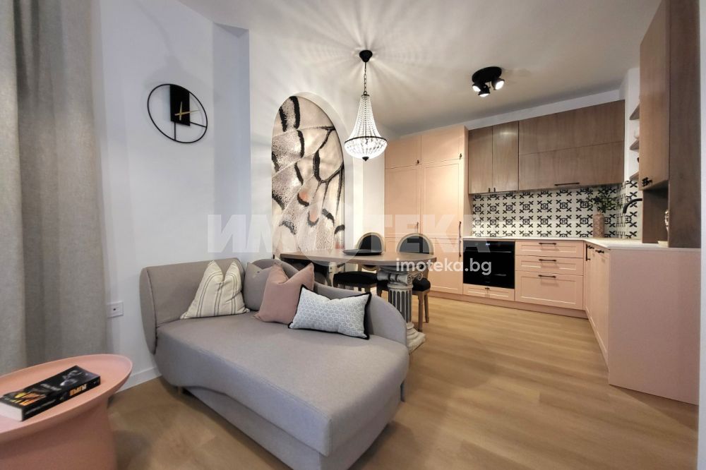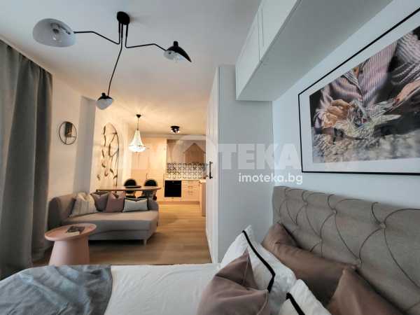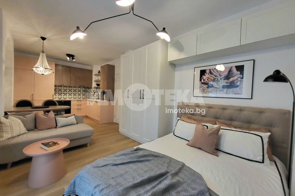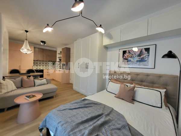 Отдаваме под наем чисто ново студио в затворен комплекс. Просторното помещение е разделено на кухненски кът, дневна част и спална зона. Има санитарен възел, коридор и балкон. Отоплението и охлаждането са с климатик. В наемната цена е включено ползването на открито паркомясто. Таксата поддръжка е символична и се заплаща допълнително. Отдава се дългосрочно, подходящо е за един или максимум двама души.