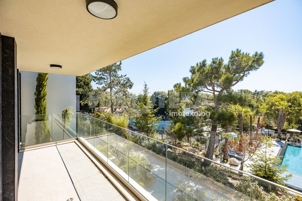 Нова, квалитетна сграда със съвременна и елегантна визия, която е част от луксозен затворен комплекс. Високо качество на изпълнение на строителство и довършителни работи, осигурява се безупречна поддръжка на общи части, красиво озеленен двор/градина, които се поддържат целогодишно, както и басейн с екзотична визия. Акт 16 от 2024г.