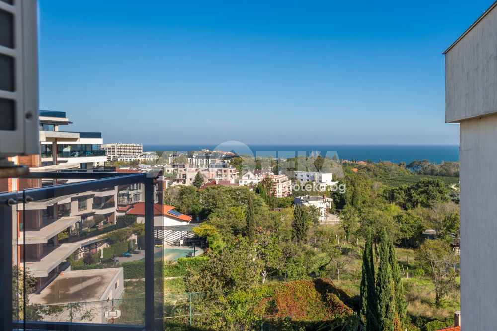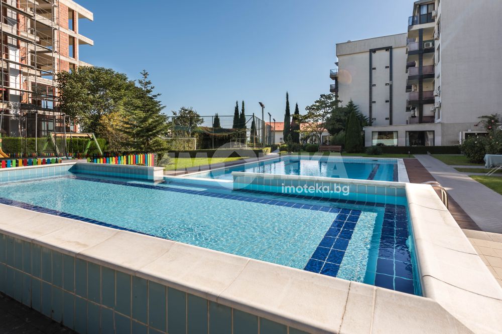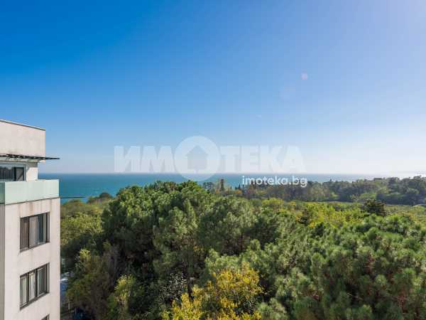Тристаен ,безупречен, много слънчев апартамент с нескриваема МОРСКА ПАНОРАМА. Намира се в затворен комплекс на метри от морето в район "Св. Константин и Елена". Жилището е в отлично състояние, продава се с частично обзавеждане/всичко трайно прикрепено/ и се състои от коридор, дневна с удобна, широка тераса и нескриваема морска панорама към залива и лозята на Резиденция Евксиноград, две слънчеви спални, две големи бани със санитарен възел, още една тераса към източната спалня. Чиста жилищна площ 101.35 кв.м. Към имота се продава и подземно паркомясто с цена 30 000 евро. Отделно, в дворната част на комплекса, може да се ползва още едно място за паркиране, нефиксирано. Към имота има и избено помещение с площ 2.35 кв.м, 4.9593 идеални части от общите части на сградата и правото на строеж. Такса поддръжка на комплекса - 150 лв. на месец.
