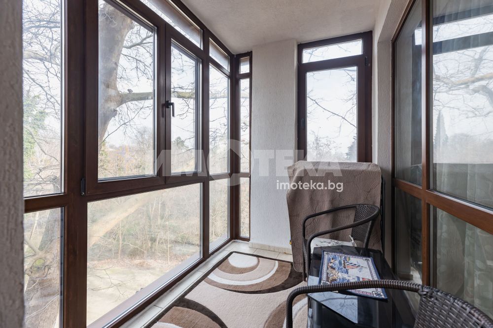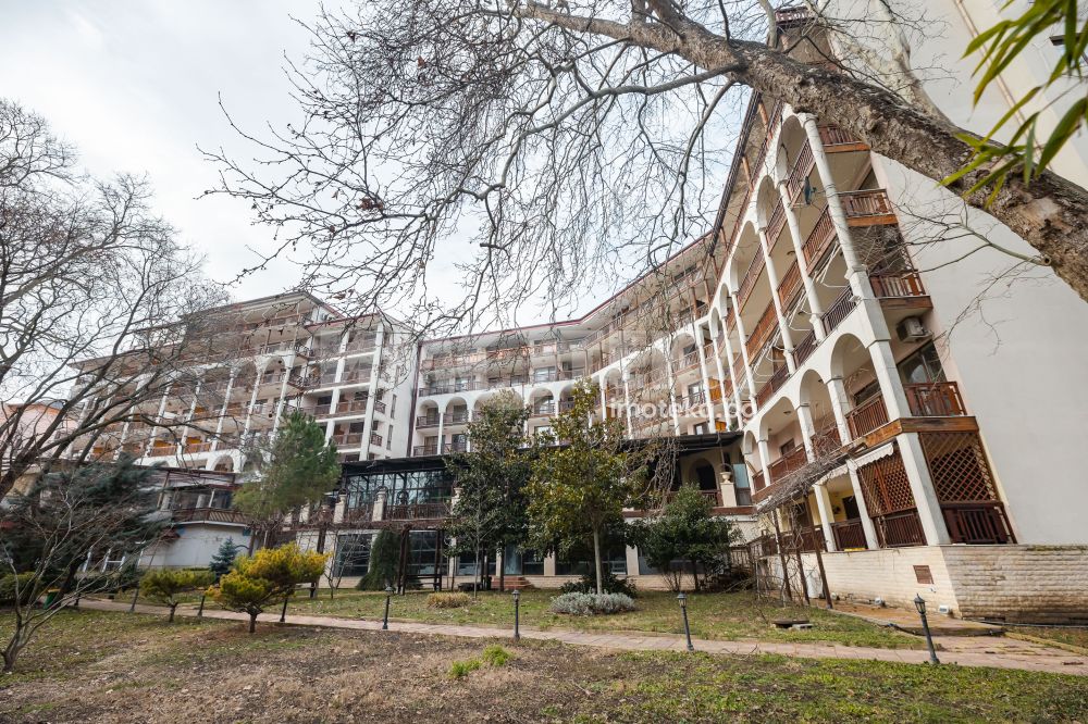 Тухлена сграда с добри общи части и асансьор, с красиво озеленен двор, външен и вътрешен басейн с минерална вода.