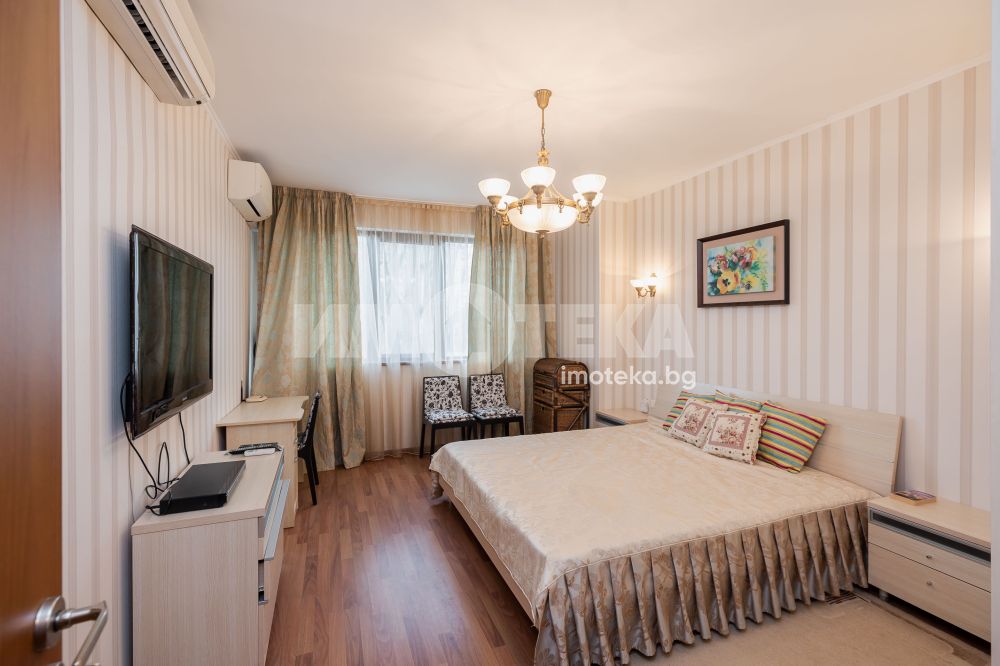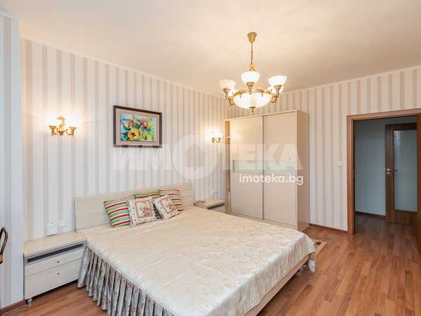 Ексклузивно отдаваме под наем просторен тристаен апартамент в комплекс Естрея резидънс. На 130 кв.м. са разположени оборудвана кухня с трапезарна и холова част, от която се излиза на голям балкон, спалня с двойно легло, втора спалня с двойно легло и прилежащи остъклен балкон и баня с тоалет и вана, коридор, баня с тоалет и душ кабина. Отопление и охлаждане с климатици.