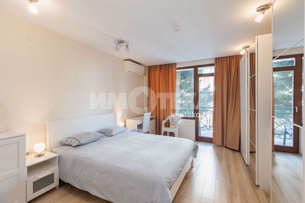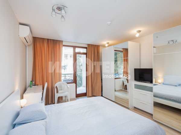 Просторен тристаен апартамент, разположен в сърцето на к.к. Златни пясъци. Сградата е на първа линия, на метри от плажната ивица. Състои се два апартамента - двустаен и едностаен: голяма дневна с трапезария и кухненски бокс, две големи спални, две бани с тоалет, антре и тераса. Апартаментът е в отлично състояние, напълно обзаведен и оборудван. В цената е включен подземен гараж в сградата.