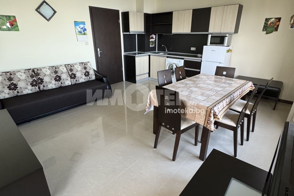 Жилището предлага просторна дневна с кухненски бокс, две уютни спални и две тераси с уникална гледка към морето. Интериорът е стилен и функционален, като апартаментът е готов за нанасяне веднага.