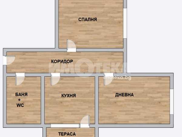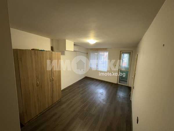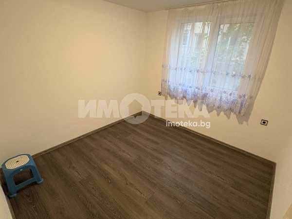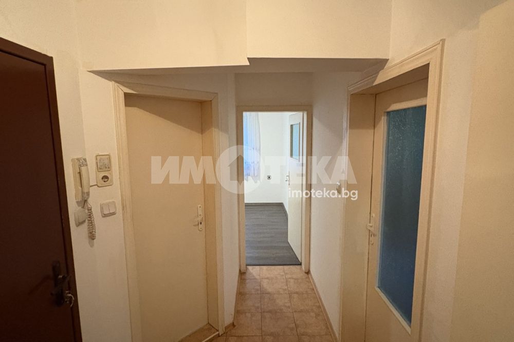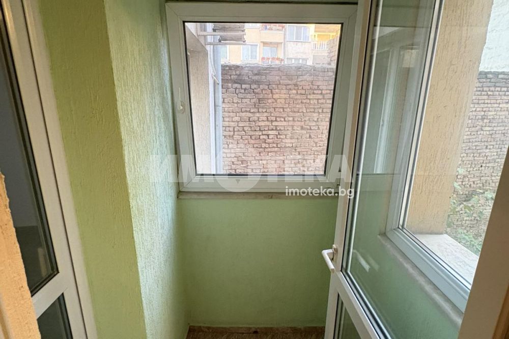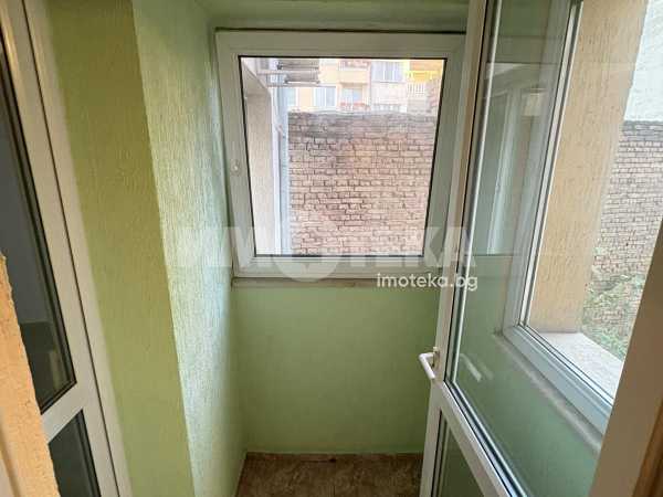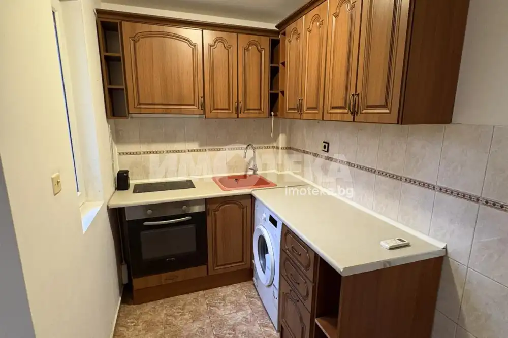 Двустаен апартамент с отделна кухня на Колхозен пазар. Имота е частично обзаведен на втори етаж в тухлена кооперация. Състои се от дневна, спaлня , кухня, оборудвана с електроуреди, тераса пред кухнята, баня с тоалет. Жилището е в добро състояние. Към имота има 10 кв. м идеални части от дворното място. Изложение: дневна и спалня на запад, кухня на изток.