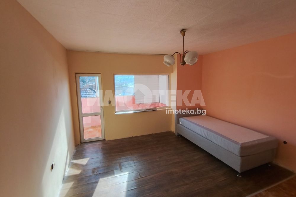 Предлагаме двустаен апартамент с чиста площ 49квм, на етаж първи жилищен над търговско помещение, в района на Колхозен пазар! Състои се от антре, дневна с тераса на изток, спалня с тераса, баня, тоалет отделно. За ремонт! Към имота има и изба.