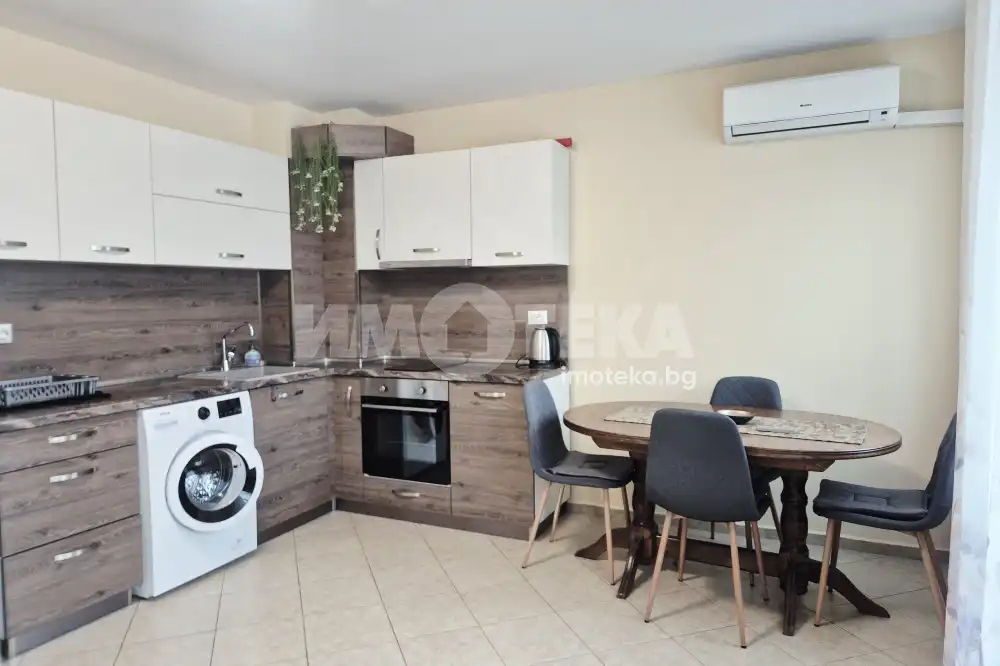Двустаен, отлично обзаведен апартамент. Жилището се състои от: просторна дневна с кухненска част - бяла техника, мека мебел. Спалня - обзаведена. Баня с тоалет. Обща тераса пред двете стаи.
