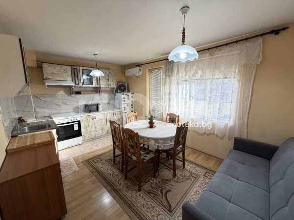 Представяме Ви, напълно обзаведен двустаен апартамент, разположен в района на Колхозен пазар. Жилището се състои от дневна с кухненска част, спалня, баня с тоалет и две тераси.