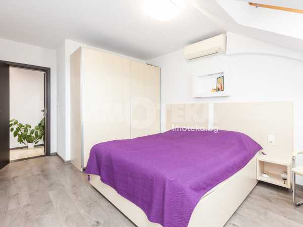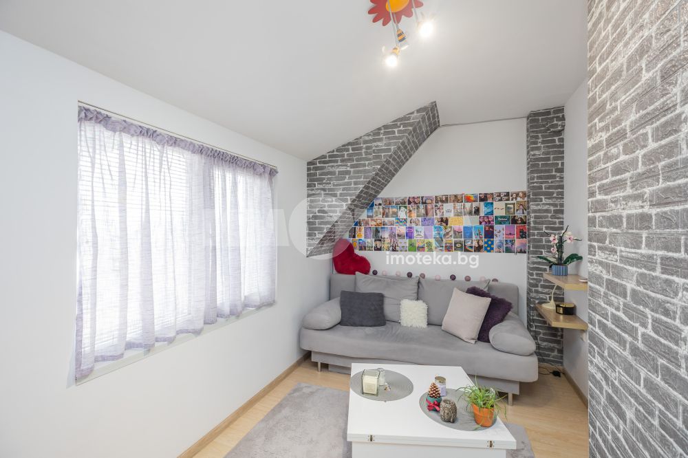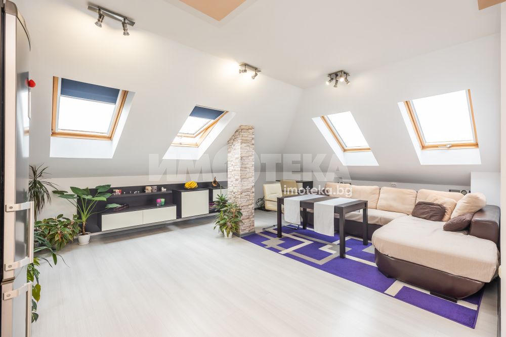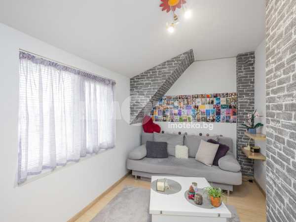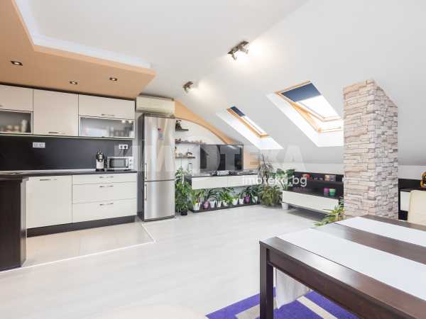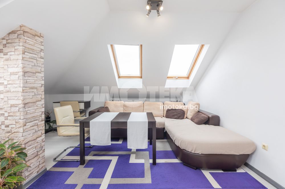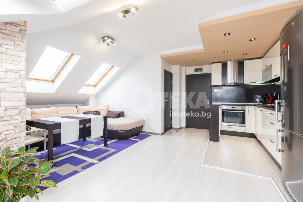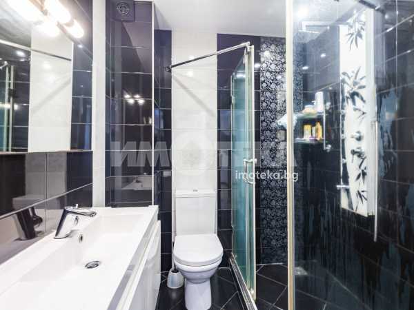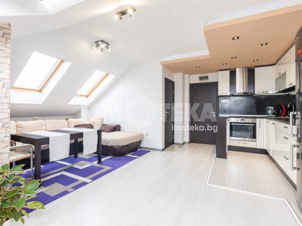 Тристаен апартамент в района на Гранд Мол. Жилището се състои от: просторен дневен тракт с обособена кухненска част с вградена кухня, трапезарна част и холна част с мека мебел, две спални, баня с тоалет, перално помещение - килер и коридор. Апартаментът се предлага отлично завършен и обзаведен с висок клас на довършителните работи, мебели и уреди. Към жилището има и избено помещение. Възможност за паркиране до един автомобил в двора на сградата. Апартаментът позволява да бъде преустроен с три спални или да се разделят два самостоятелни апартамента на двустаен и боксониера с цел отдаване под наем.