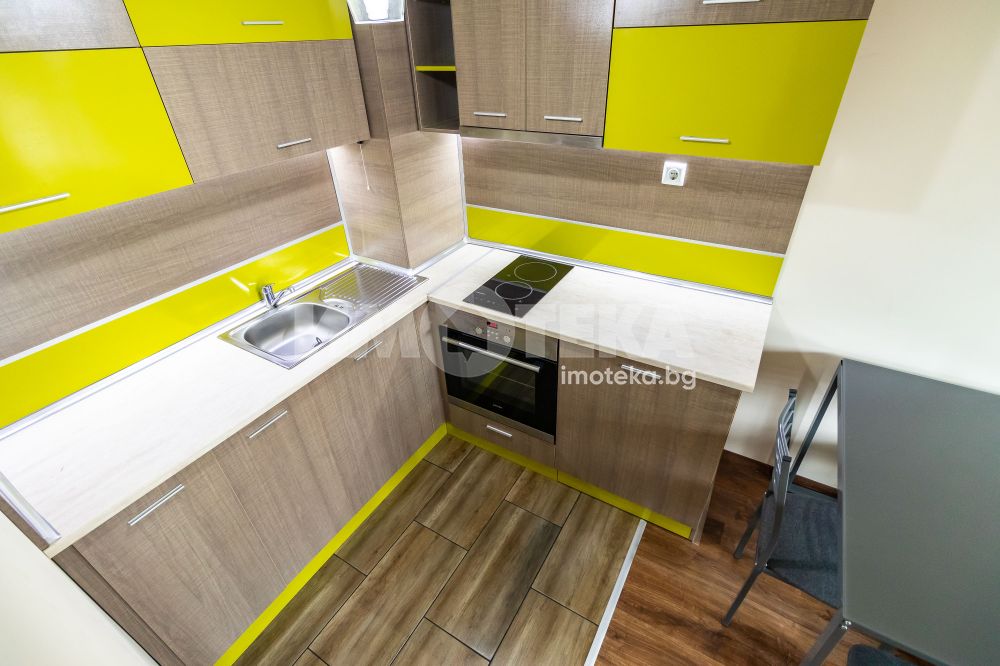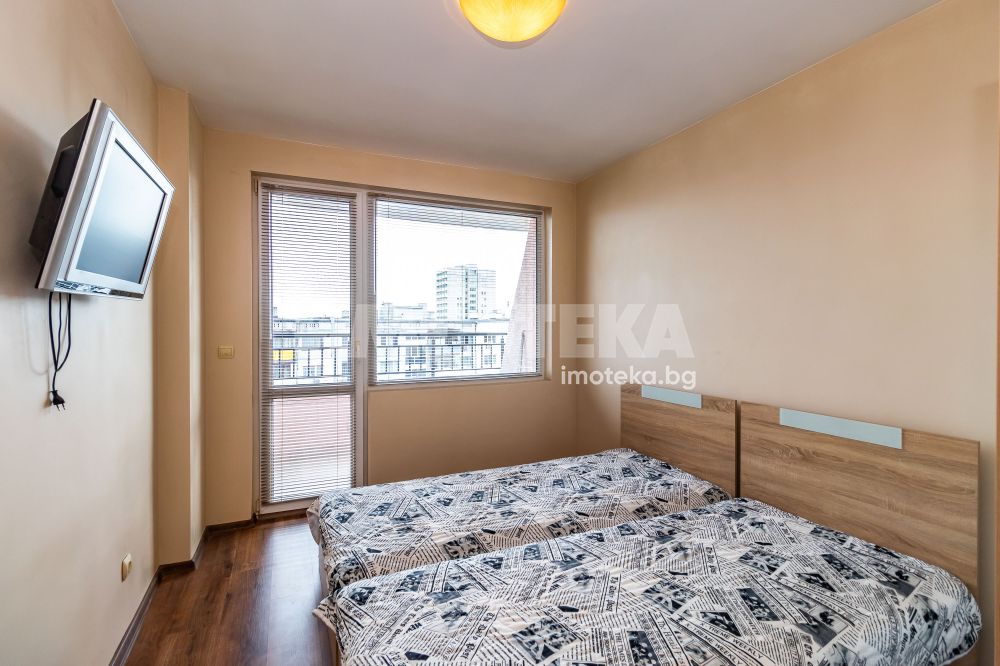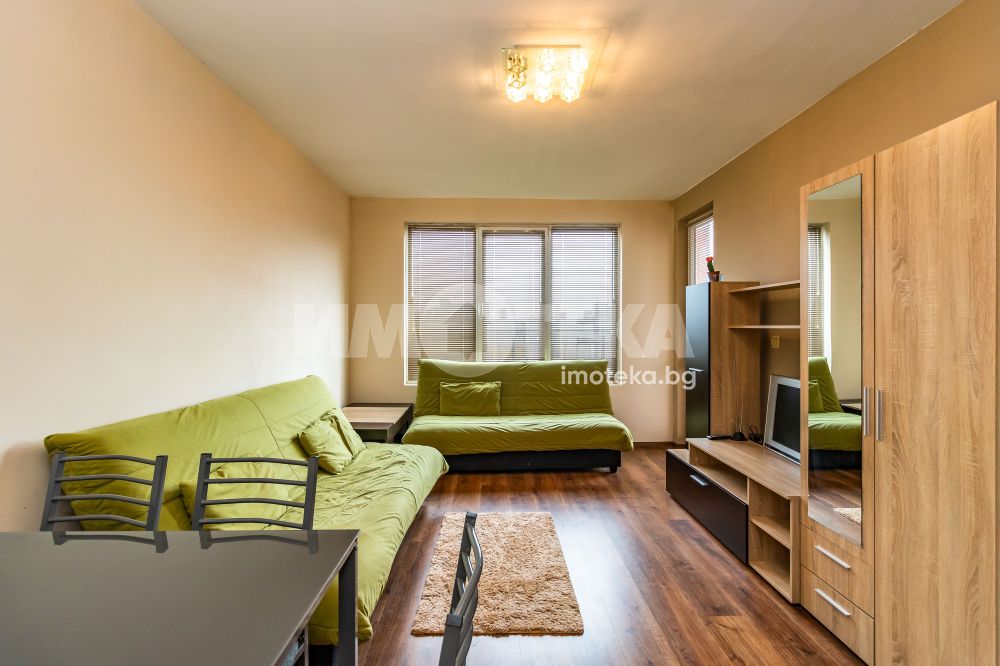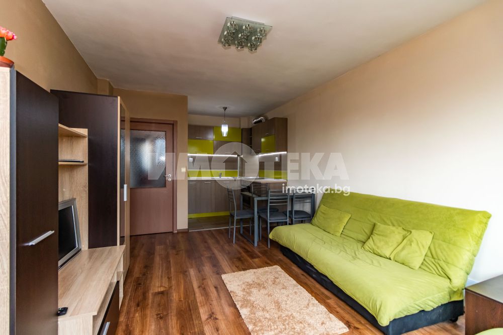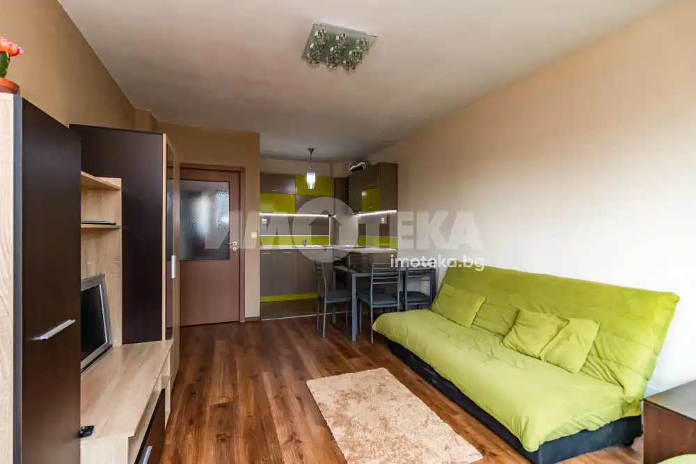 Двустаен кокетно обзаведен апартамент с изцяло южно изложение. Състои се от дневна с кухненски бокс (напълно оборудван), спалня, баня/тоалет