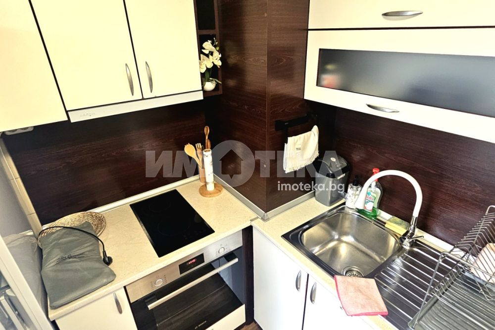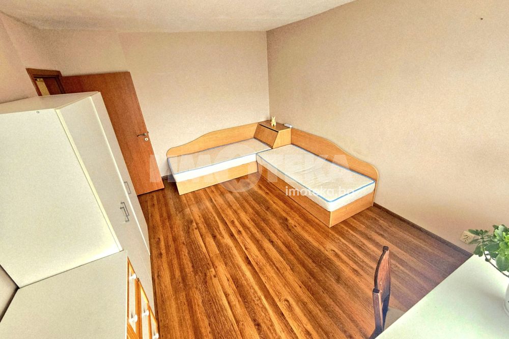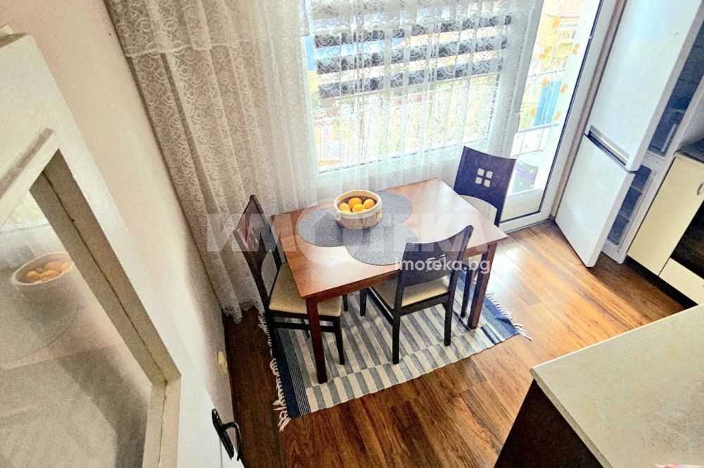 Жилището включва кухня, всекидневна, спалня и баня с тоалетна. Всекидневната е просторна, с голям разтегателен диван и гардероб. Детската стая е напълно оборудвана две легла с ракла, бюро, гардероб, скрин и етажерка, осигуряващи комфорт и място за игра и учене. Кухнята е модерна, с вградена фурна, керамични плотове и голям хладилник. В коридора има допълнителни гардероби за удобство. Обзавеждането е съвременно и добре поддържано, а в детската стая има климатик.