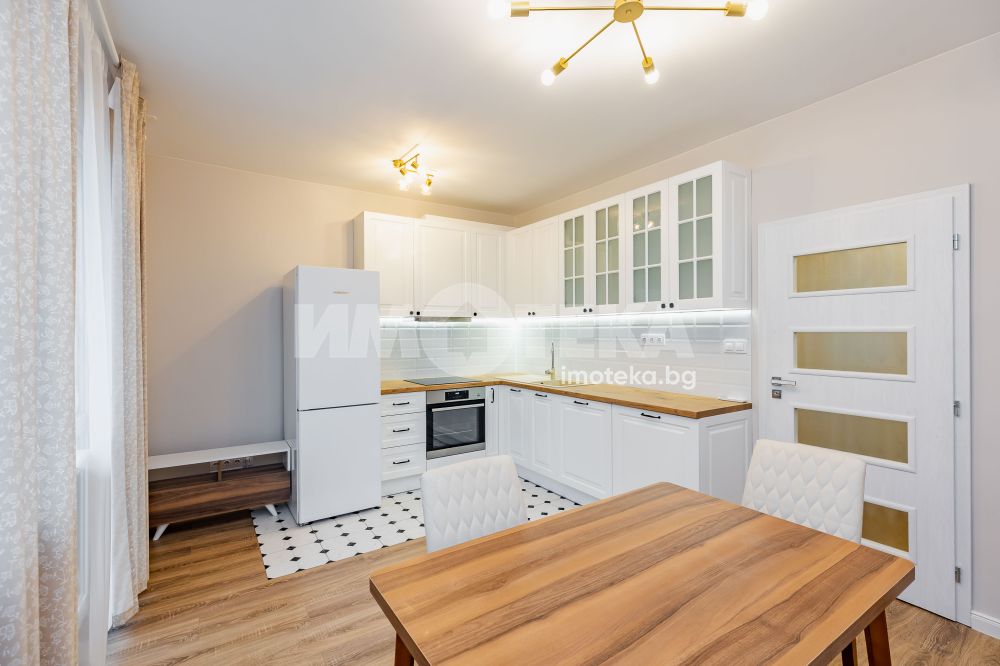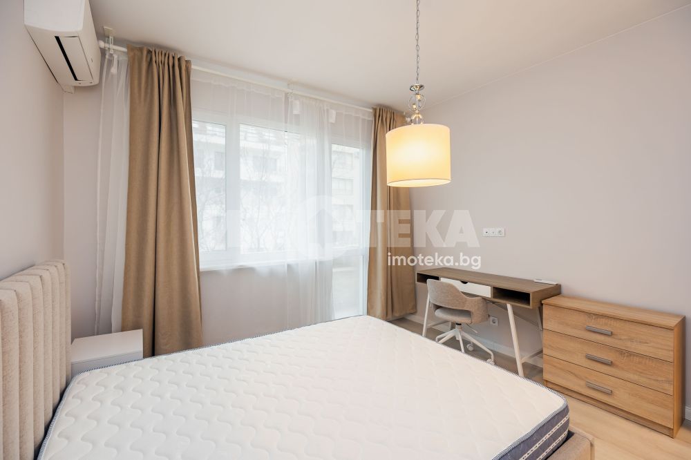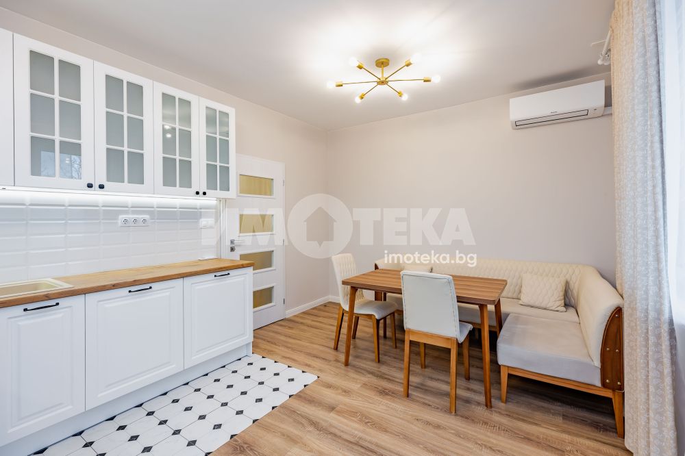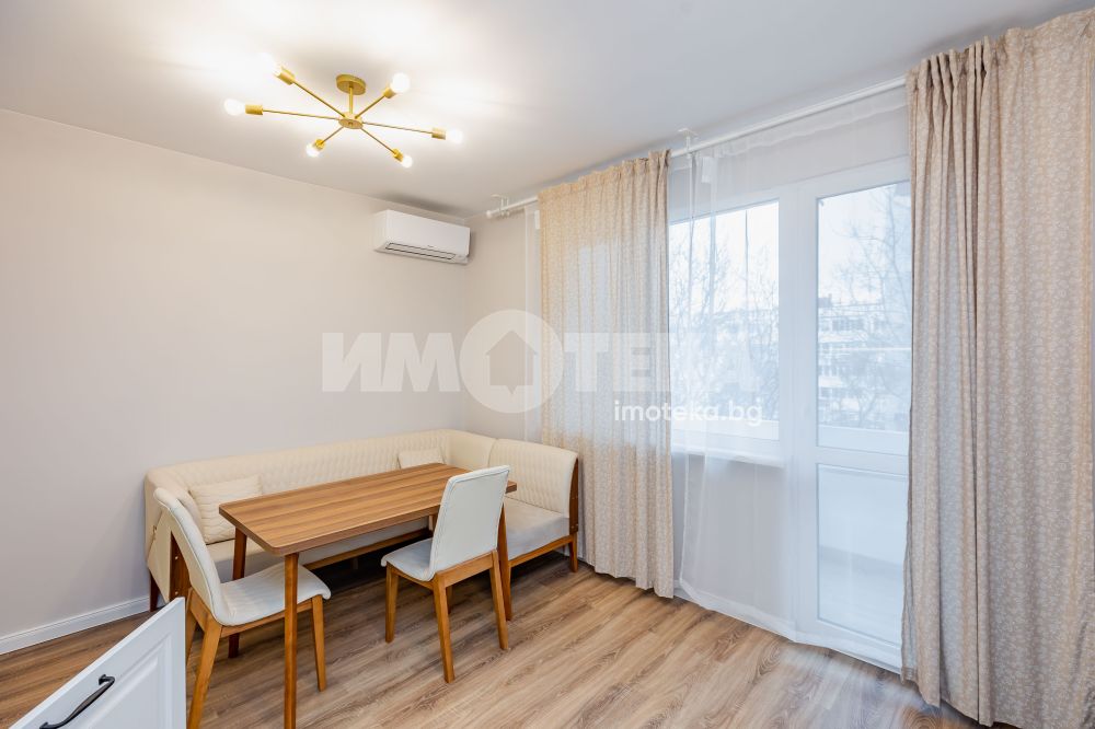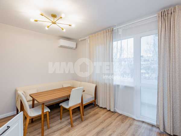 Апартаментът е след основен ремонт и разполага с ново обзавеждане и оборудване (фурна, индукционни котлони, пералня със сушилня, миялна машина и хладилник). Отоплението и охлаждането на имота е с два климатика. Отдава се дългосрочно. Огледи с ключ.