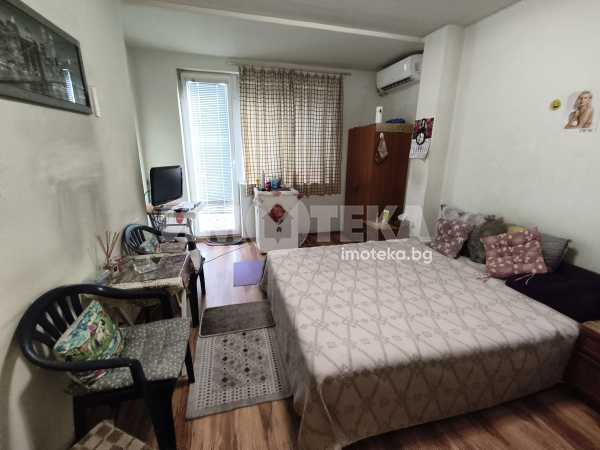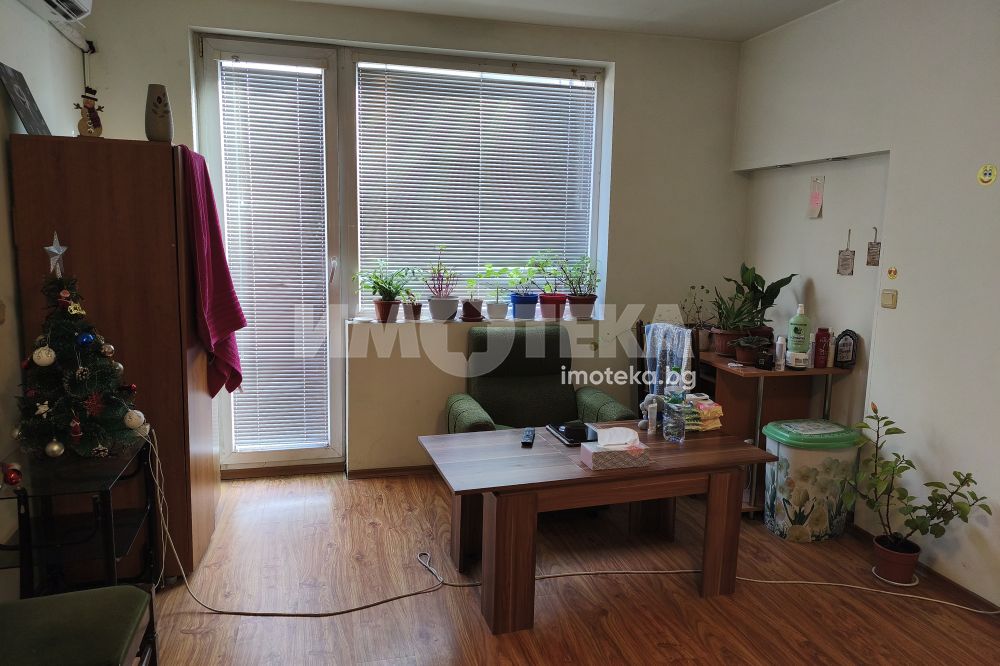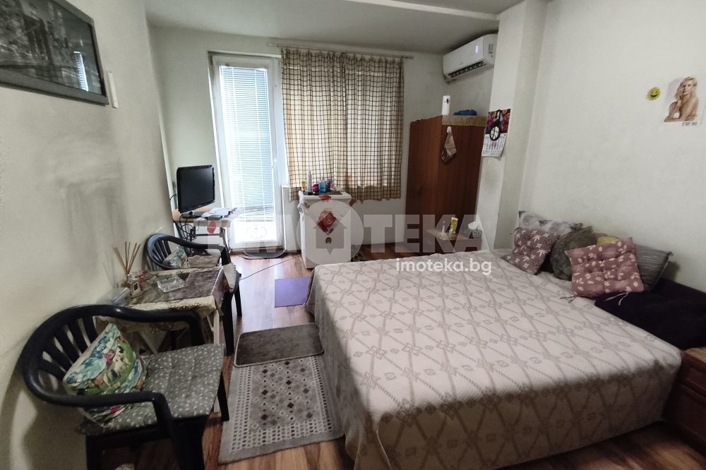 Адрес предлага за продажба двустаен тухлен апартамент. Състои се от дневна с кухненска час, разделени с преградна стена, спалня и обща голяма тераса пред двете стаи. Баня и тоалет заедно, коридор и маза.