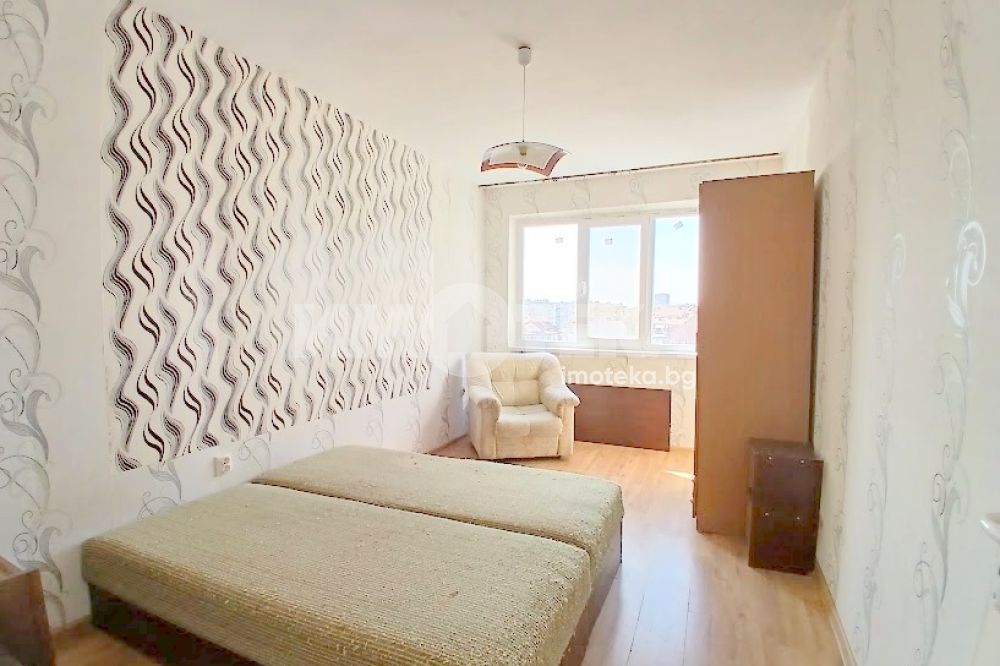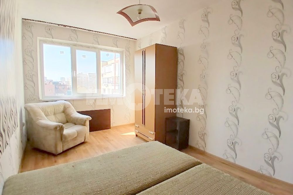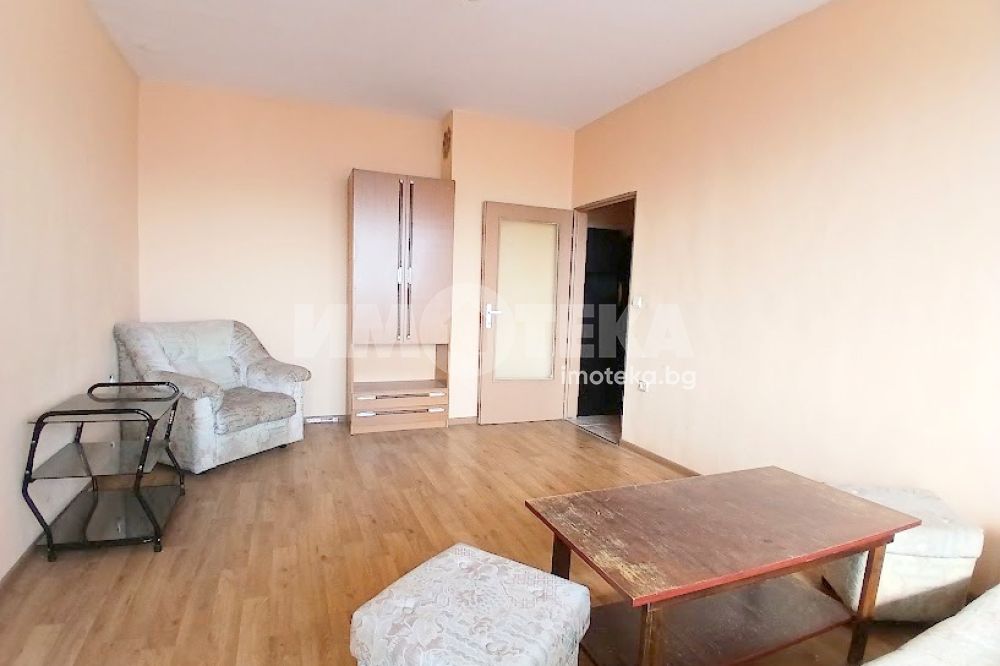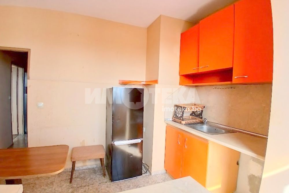 Двустаен панелен апартамент с изцяло южно изложение, разположен на седми етаж в сграда с контролиран достъп. Състои се от коридор, кухня с усвоена тераса, просторен хол с тераса, преходна спалня, баня с тоалет в едно помещение.