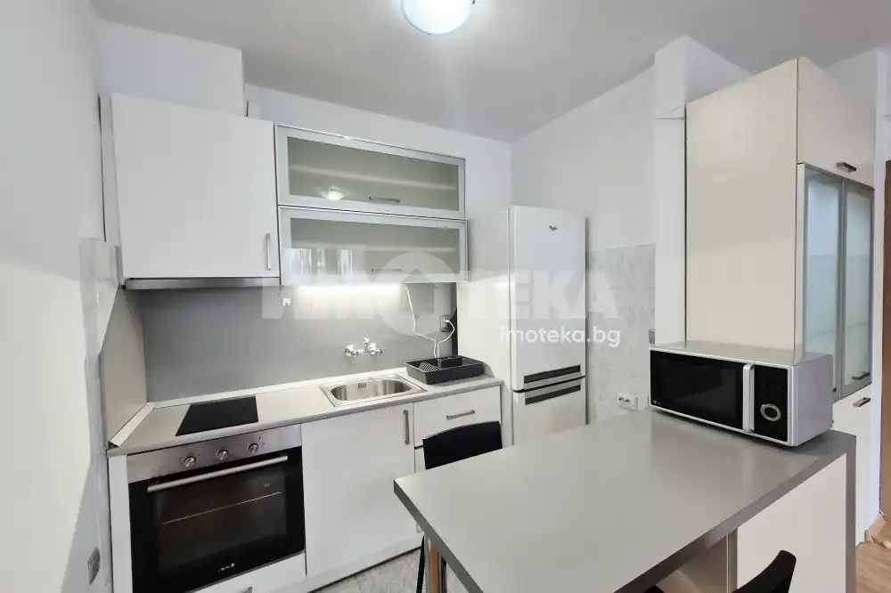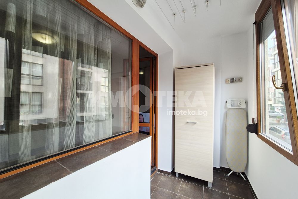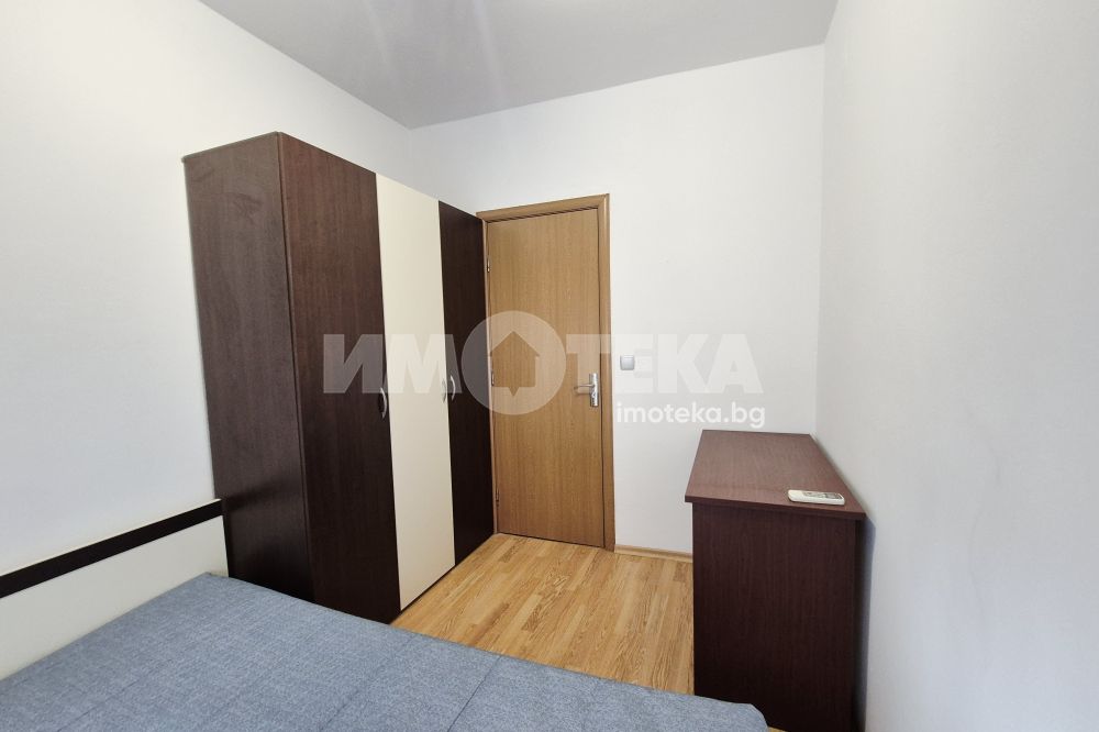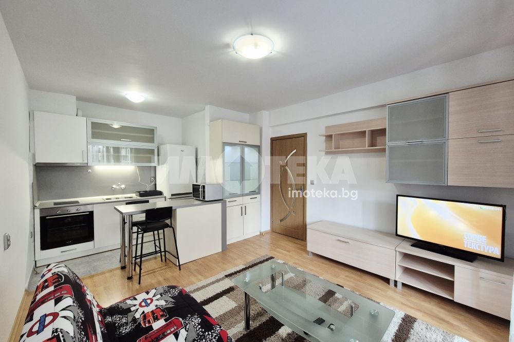 Двустаен, обзаведен апартамент - състои се от: дневна с кухненска част - бяла техника, мека мебел, климатик, остъклена тераса - пералня. Спалня - обзаведена, климатик. Баня с тоалет. Не се допускат домашни любимци.