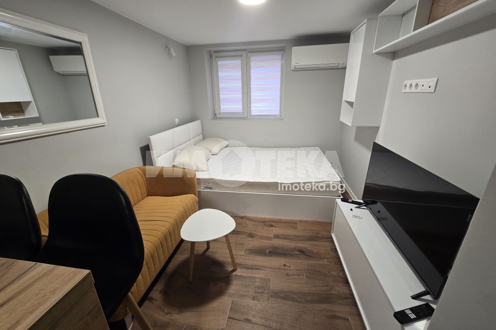 Предлагам под наем едностаен апартамент, състоящ се от една стая с кухненска част и обособен спален кът, баня и тоалетна, килер. Жилището е напълно обзаведено и оборудвано с всичко необходимо за едно домакинство. Отоплението е решено с климатик.