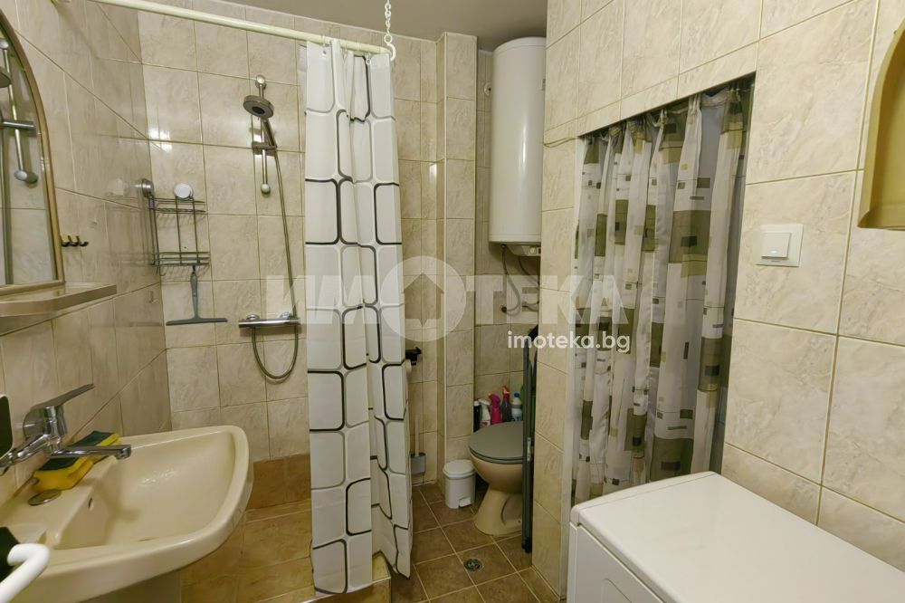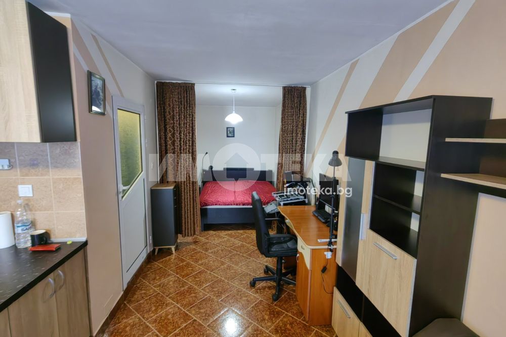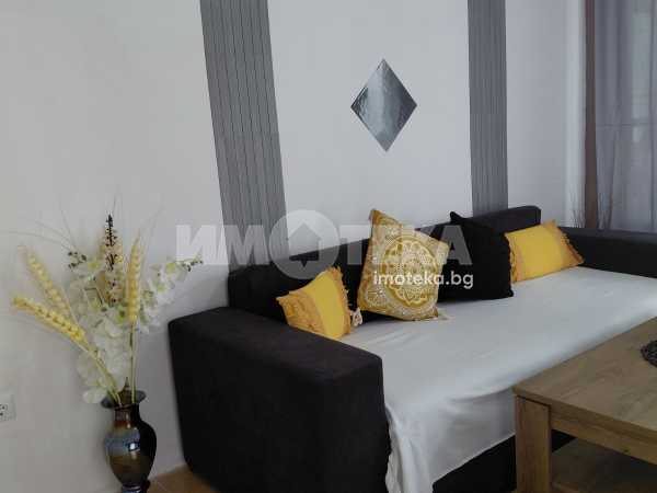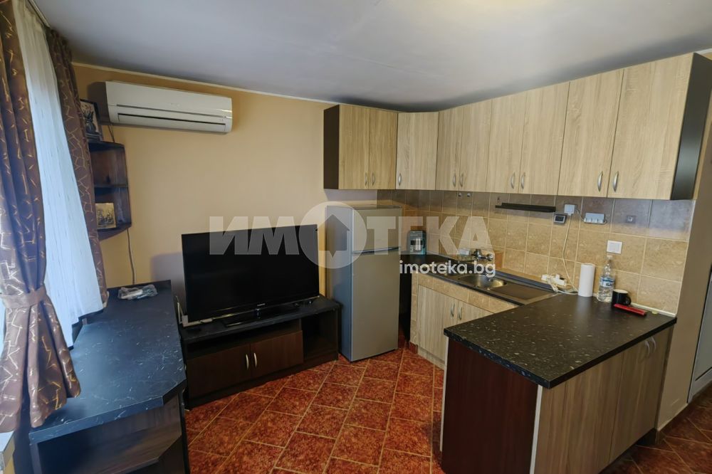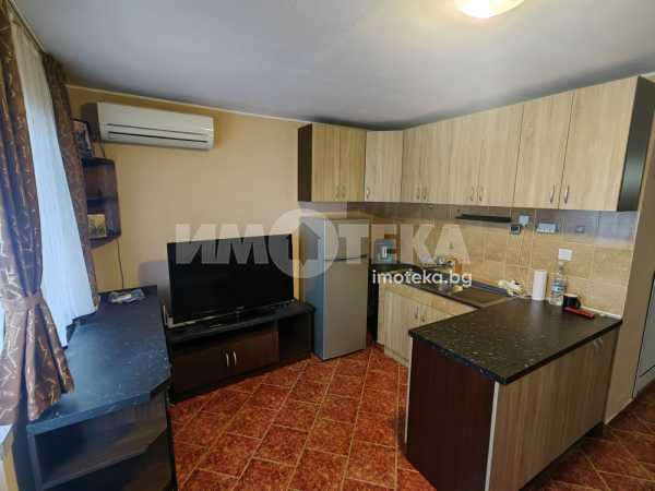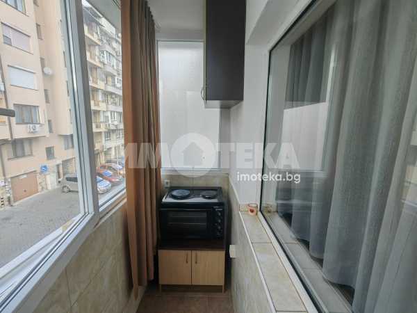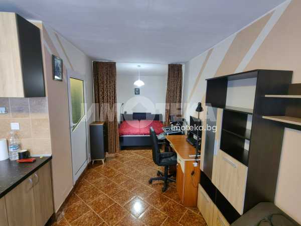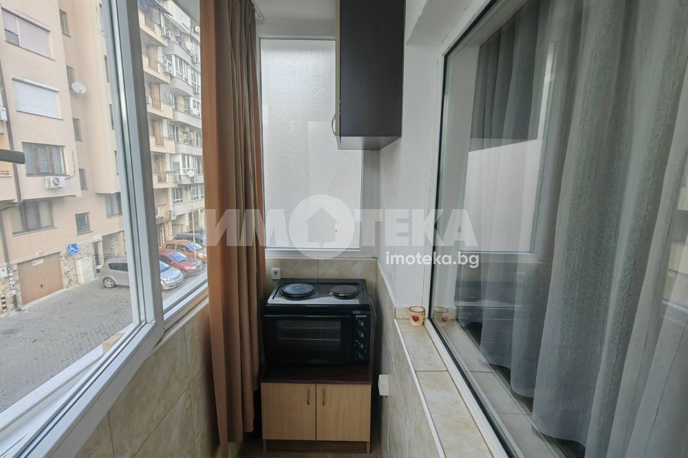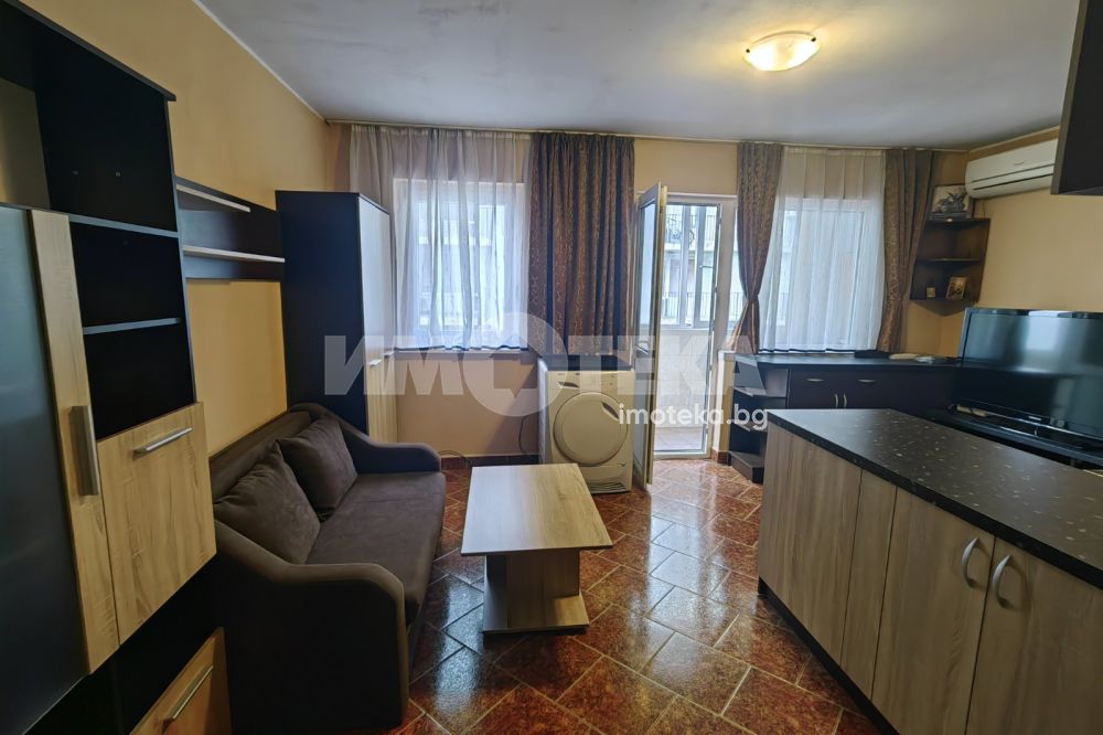 Просторно студио, разпределено на кътове - спален кът, кухненска част с мека мебел, остъклена, просторна тераса, коридор, санитарен възел, килерна ниша. Отоплява се с климатик. Техниката включва: печка, пералня, хладилник, телевизор, сушилня. В апартамента има прекаран активен интернет към А1, който може да се ползва срещу 30 лв месечно.