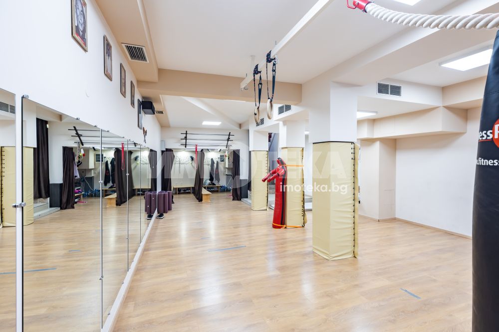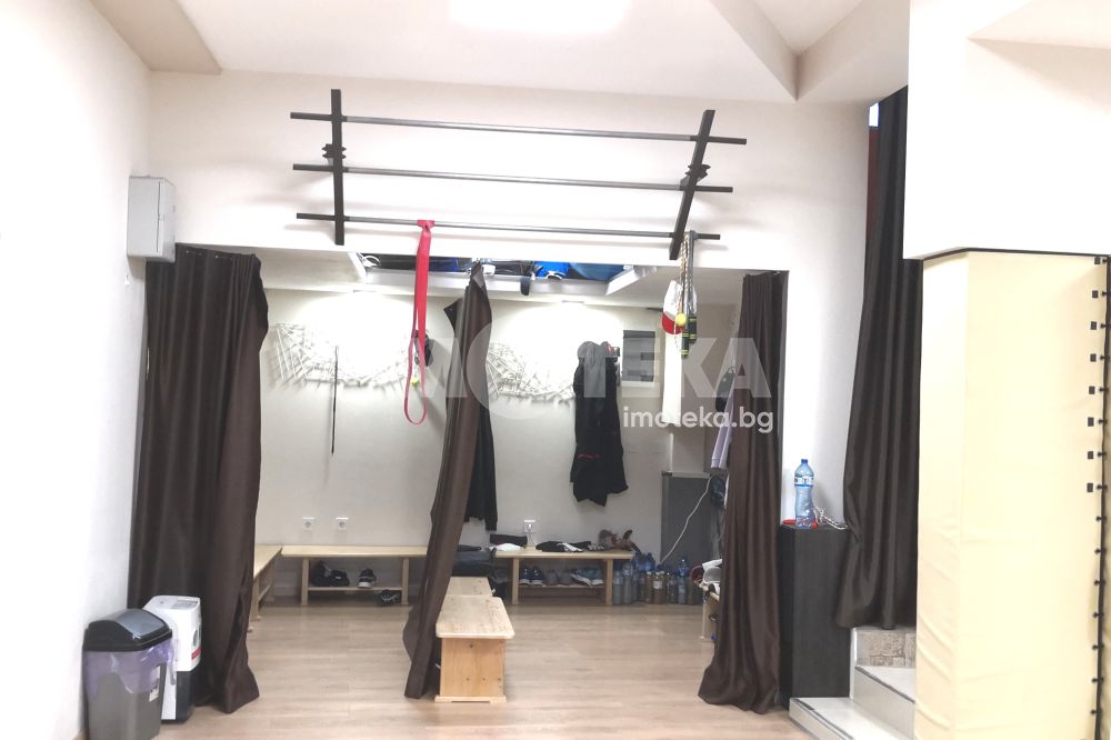 Фитнес оборудвана зала 138 кв.м, състояща се от входно антре на партерен етаж, стълбище към залата, санитарно помещение и съблекалня. Статут на обекта - за обществено хранене ( Кафе - бар ). Подходяща за различни видове дейности.