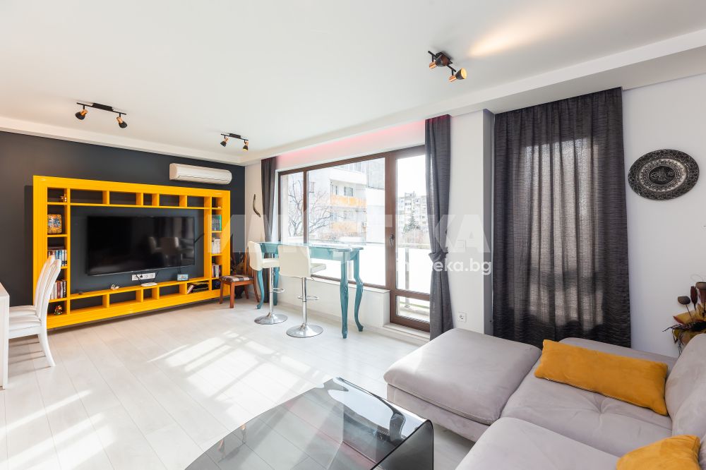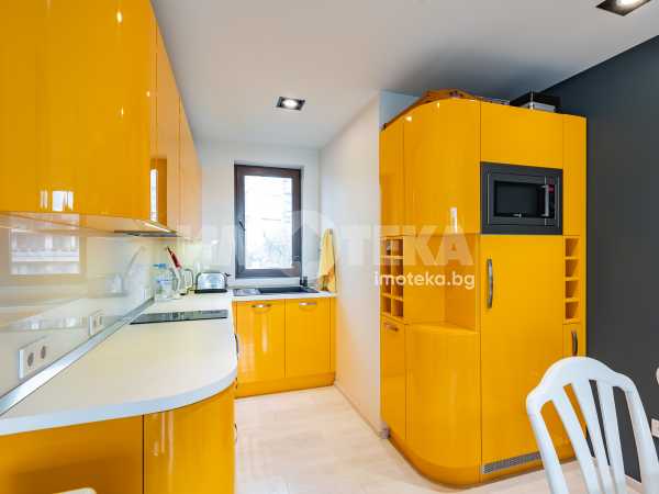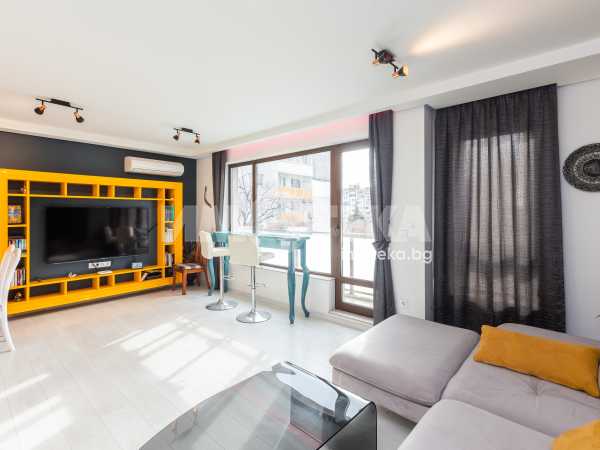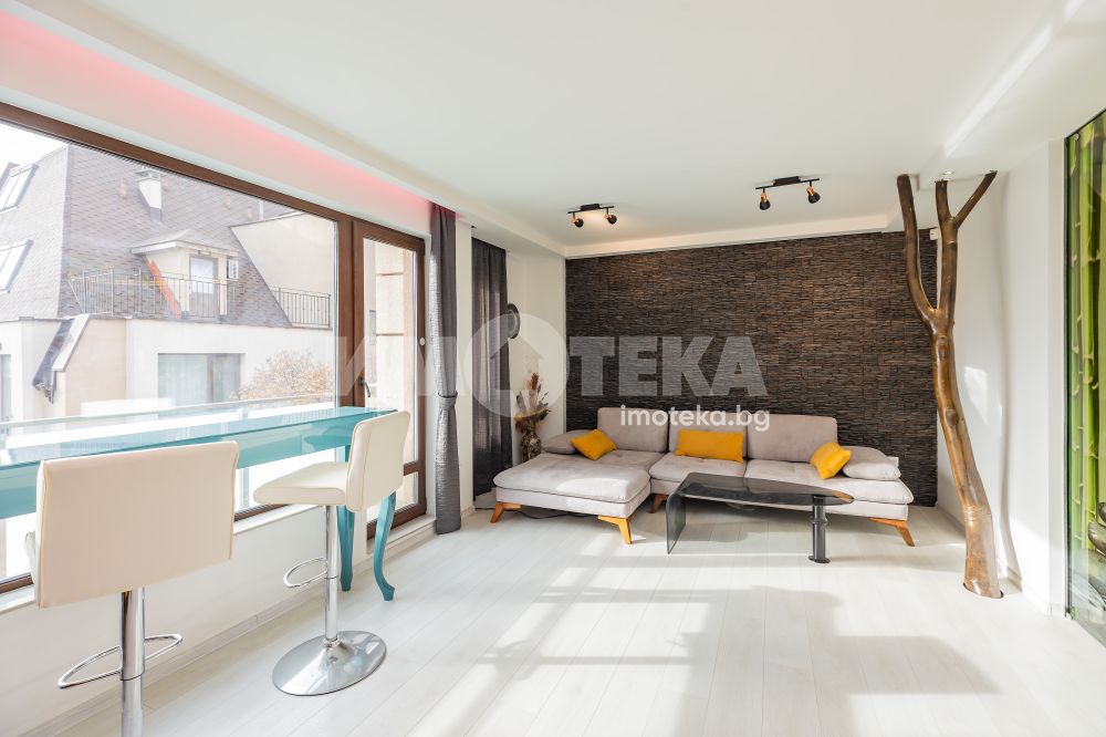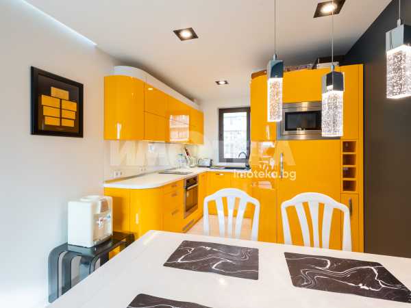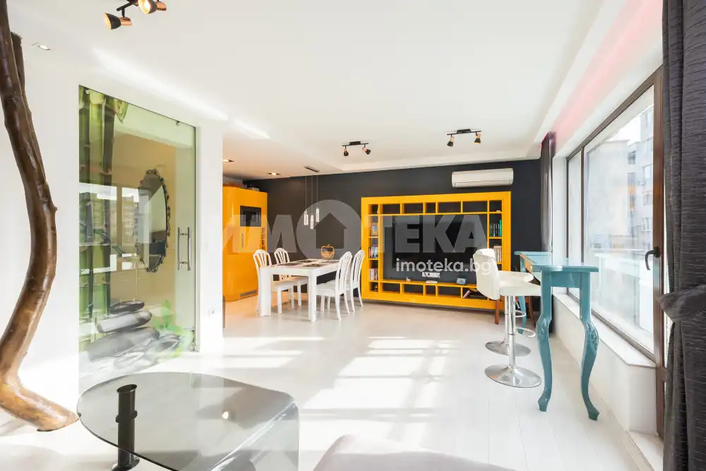 Тристаен напълно обзаведен апартамент, разположен в малка луксозна сграда в кв. "Левски" със седем апартамента. Южно изложение на целия апартамент. На първо ниво е разположен голям дневен тракт с обособен кухненски бокс 38 кв, с голяма тераса, баня - тоалет, коридор и перално помещение. На второ ниво апартаментът разполага с две просторни спални по 15 кв, всяка с гардеробна и обща тераса, баня-тоалет и коридор. Жилището е обзаведено по дизайнерски проект, много топло, светло и уютно. Продава се с цялото обзавеждане и оборудване. Към апартамент има и паркомясто във вътрешния двор.