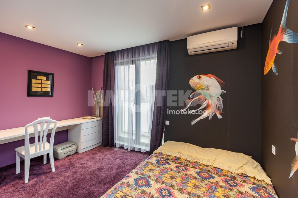 Елегантен дом с характерен модернистичен стил за хора, ценители на лукса и изяществото. Локация, изцяло южно изложение, просторни стаи, висок клас обзавеждане и оборудване.