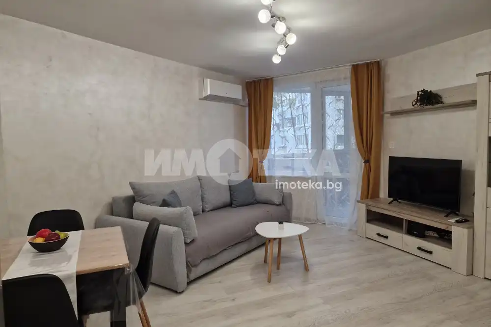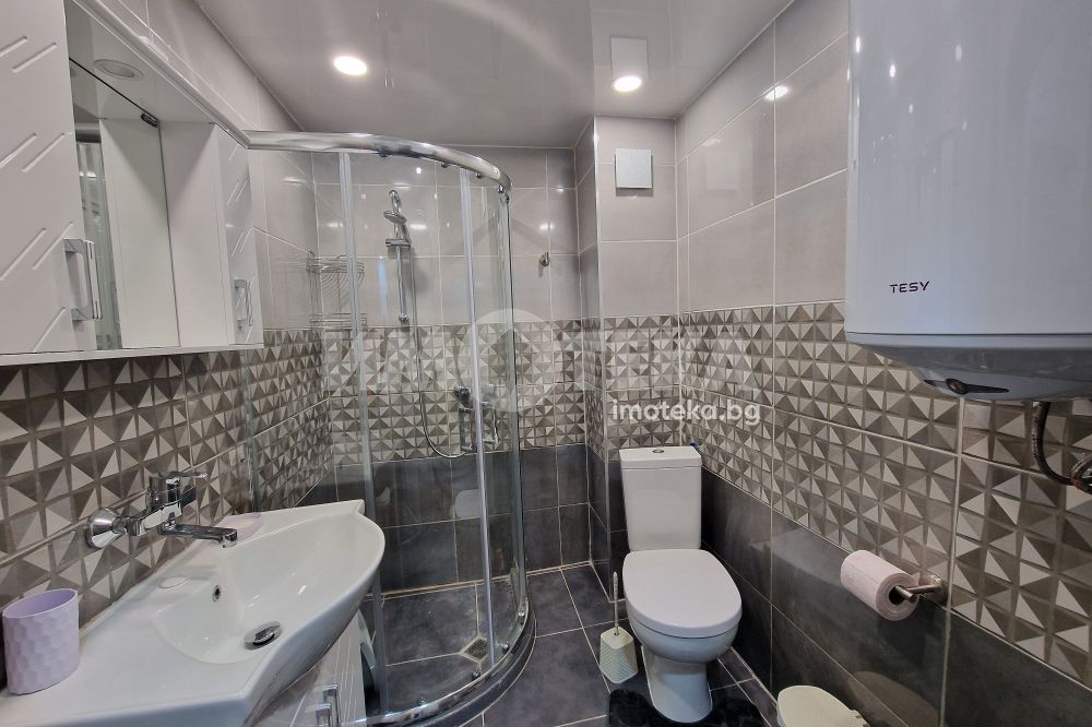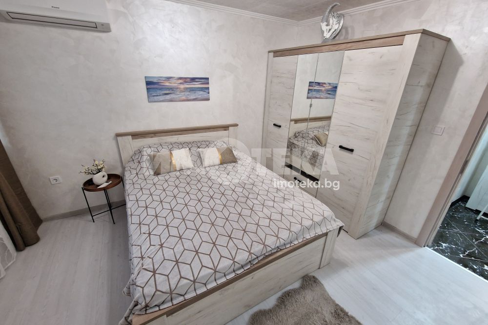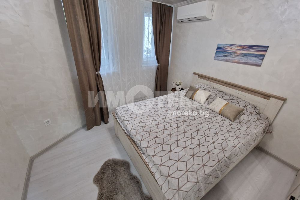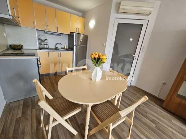 Двустаен, напълно обзаведен апартамент, с площ от 55 кв.м., жилището се състои от просторен дневен тракт с кухненски бокс, спалня, баня и тоалетна, тераса. Апартаментът е след основен ремонт, напълно обзаведен и оборудван с всички необходими електроуреди хладилник, пералня, готварска печка, телевизор, климатици.