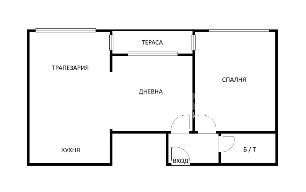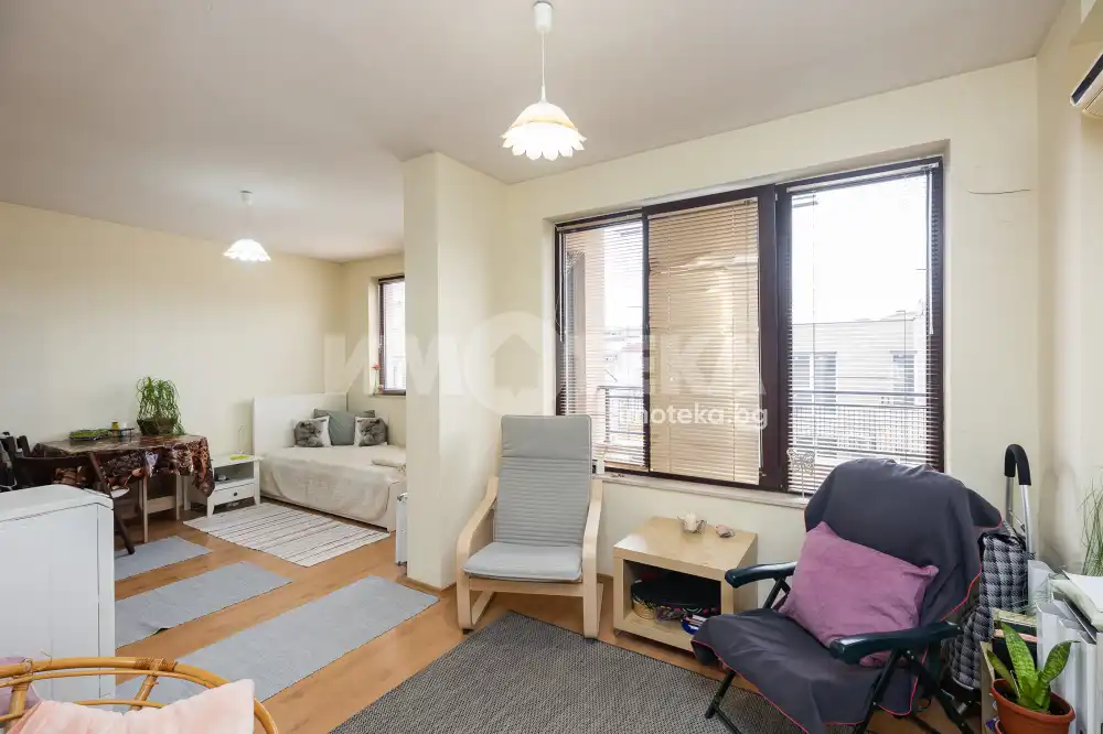 Двустаен апартамент, състоящ се от входно антре, дневна столова с кухненски бокс, спалня, баня-тоалетна и балкон. Към имота има и прилежаща маза.