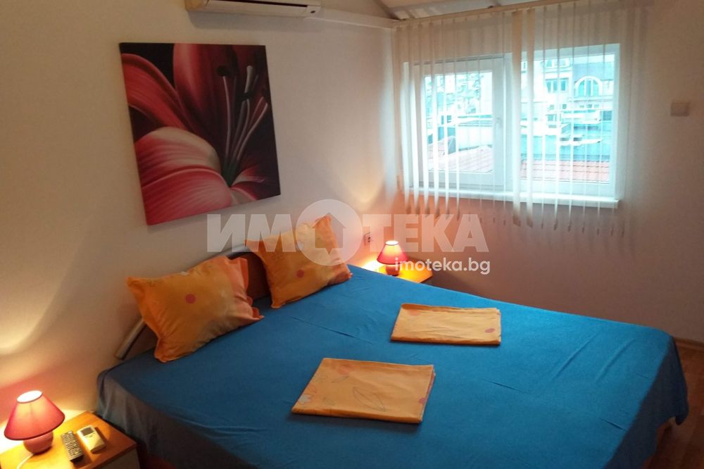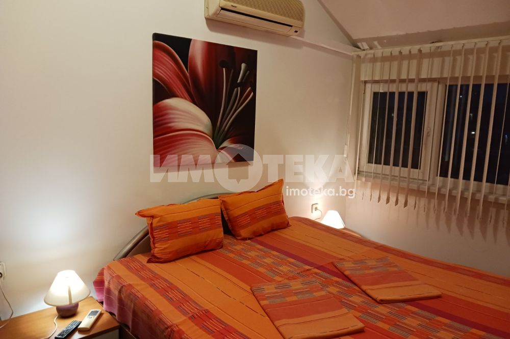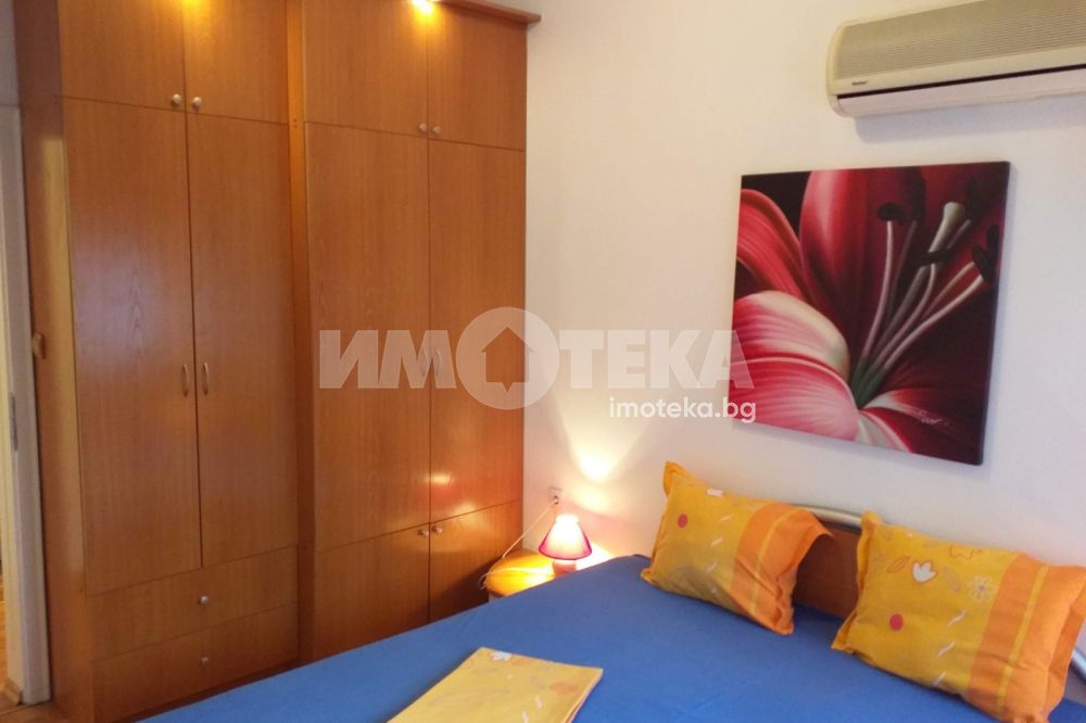 Предлагаме Ви напълно обзаведен тристаен апартамент с отлично обзавеждане. Състои се от коридор, две спални, просторен хол с кухненска част, две тераси, баня, тоалетна, перално помещение, кухня. Четири климатика! Южно изложение.