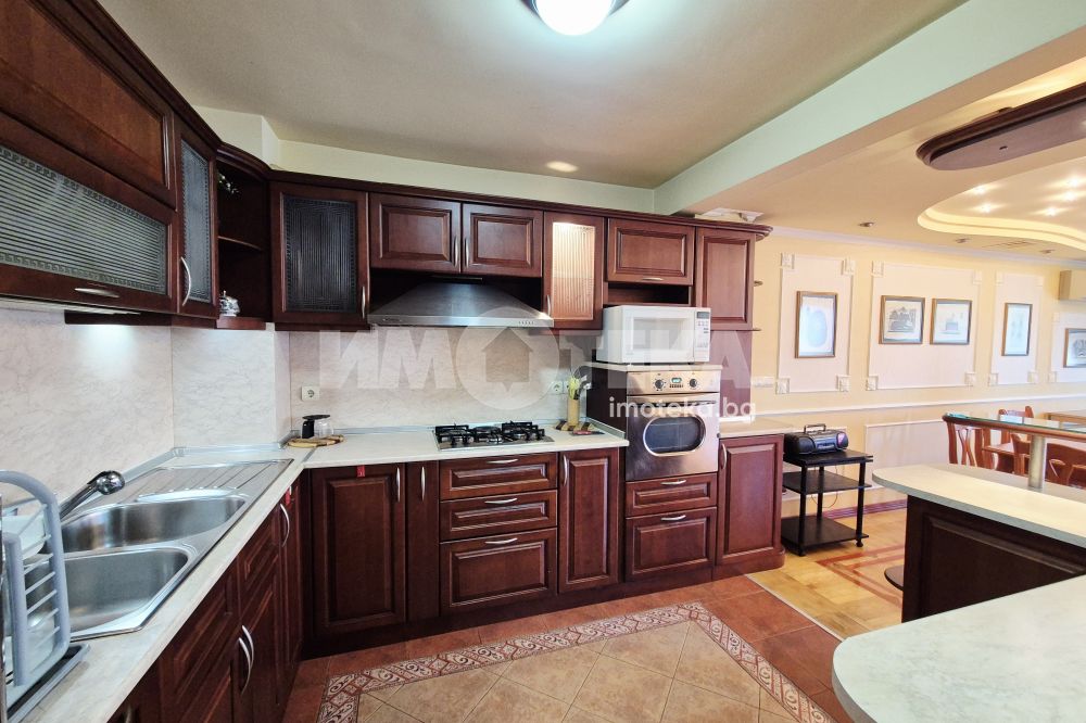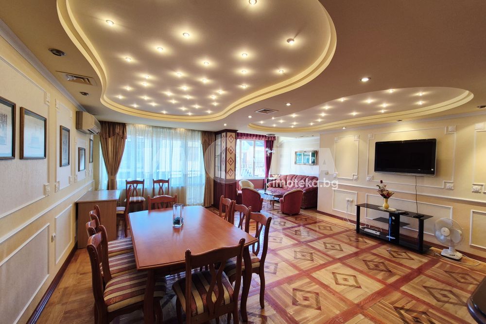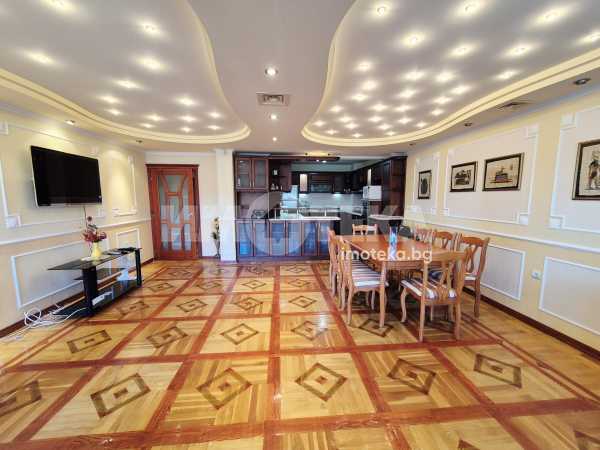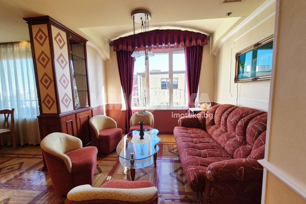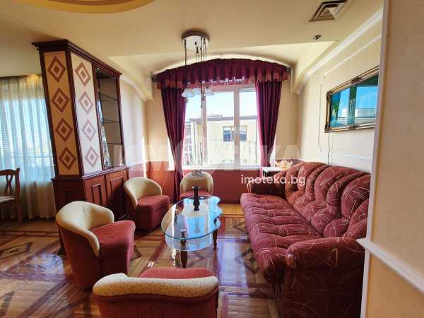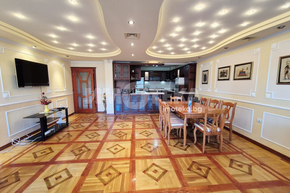 Тристаен, просторен апартамент в района на Лятно Кино Тракия. Жилището се състои от голяма дневна около 40 кв.м. с кухненска част, тераса. Родителска спалня със собствена баня и дрешник. Втора стая - като детска или кабинет. Втора баня с тоалет. Остъклена тераса.