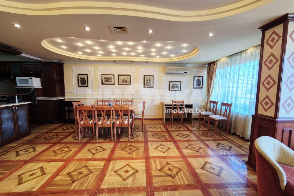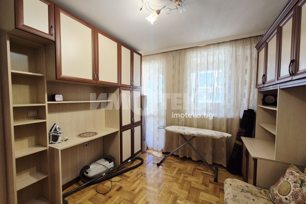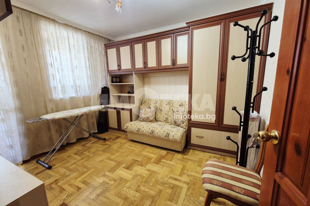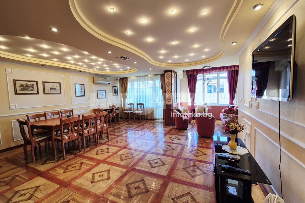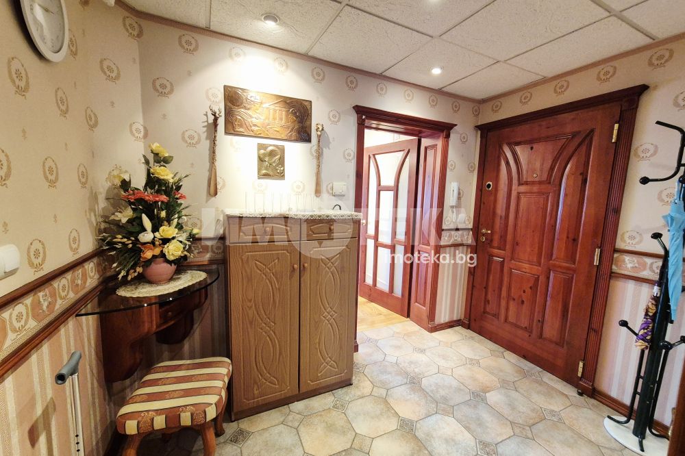 Тристаен, просторен апартамент в района на Лятно Кино Тракия. Жилището се състои от голяма дневна около 40 кв.м. с кухненска част, тераса. Родителска спалня със собствена баня и дрешник. Втора стая - като детска или кабинет. Втора баня с тоалет. Остъклена тераса.