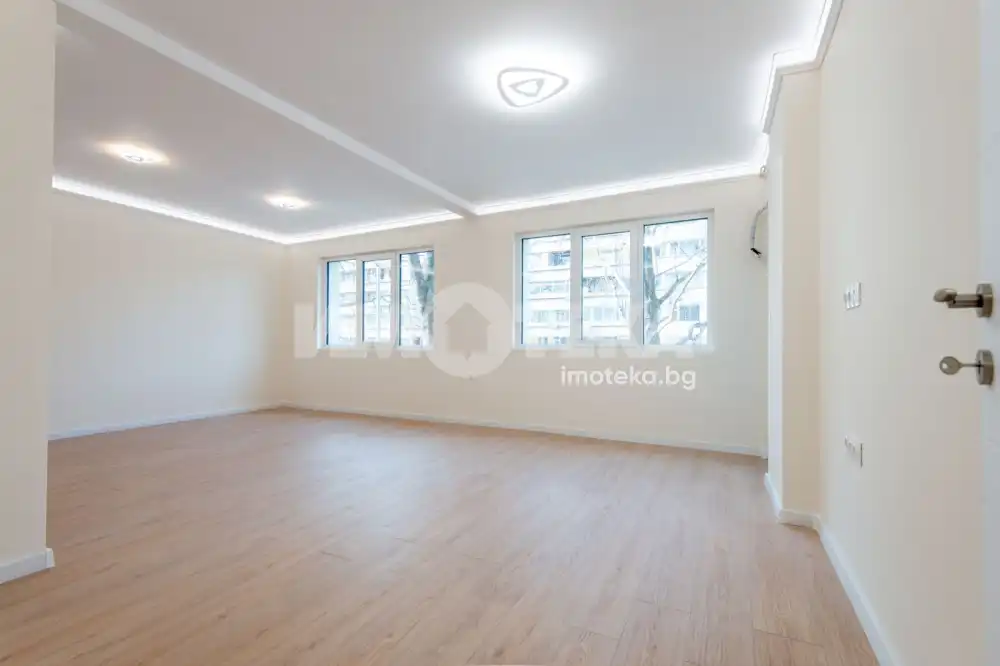 Апартаментът е след пълен основен ремонт „до ключ“ – изцяло сменени електрическа и ВиК инсталации, нови подови и стенни настилки във всички стаи, декоративно обработени стени, изкарани изводи за климатици във всяка стая, LED осветление и нови осветителни тела, нови конзоли (всяка стая има прокарани кабели за интернет и телевизия от таблото), ключове и контакти, нова висок клас дограма и качествени интериорни врати, както и входна врата.