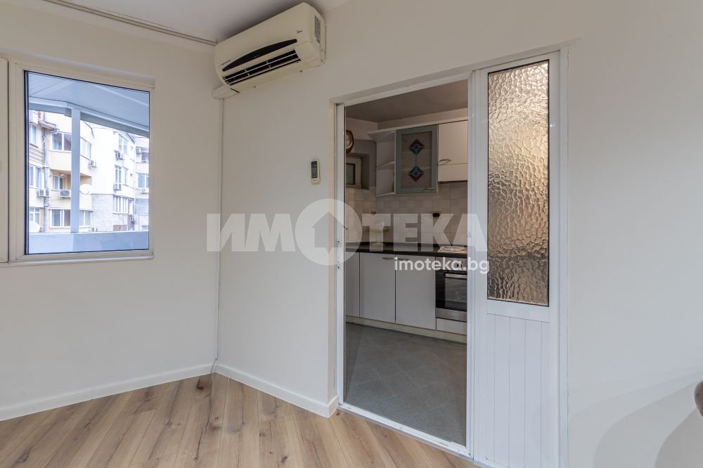 Хубав тристаен апартамент след основен ремонт в непосредствена близост до градинката на Лятно кино Тракия и храм "Св. Прокопий Варненски". Жилището е разположено на среден етаж в пететажна тухлена сграда и се състои от дневна, кухненски бокс, две спални, тоалет, баня, дрешник и две тераси. Предлага се довършено "до ключ" с подови настилки, интериорни врати, готови баня и тоалет, монтирана кухня с ел уреди. Към апартамента има прилежащо избено помещение с площ от 10 кв.м. Има възможност за покупка на голям партерен гараж на цена 42000 Евро.