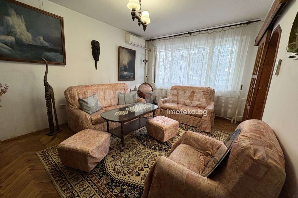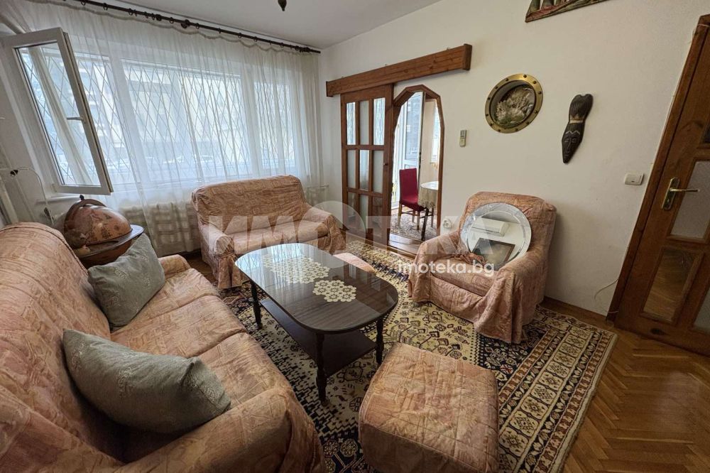 Предлагме Ви тристаен апартаметн под наем зад кръглата банка . На първи жилищен етаж, състои се от: хол; кухня; спалня, баня и тоалет отделно, килер и тераса. Има доста пространство за багаж .Всички дивани и кресла се разтягат. Отоплява се посредством два климатика. При нужда някои мебели могат да бъдат премахнати или добавени. Отдава се дългосрочно, огледи с ключ!!