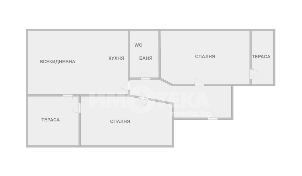 Дневна с кухня,2 спални,баня с тоалетна,2 тераси