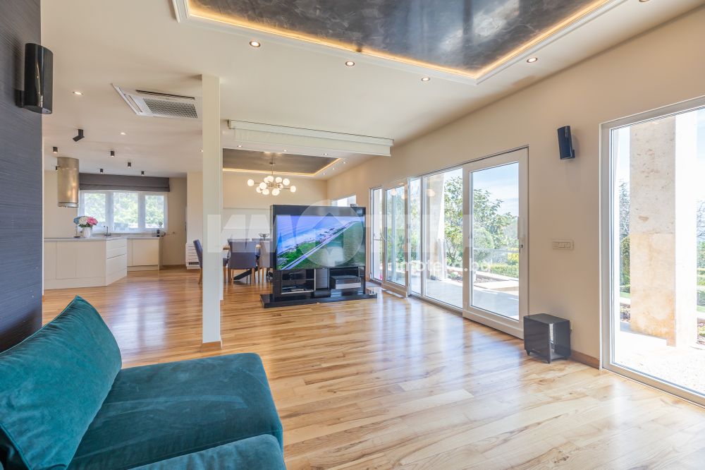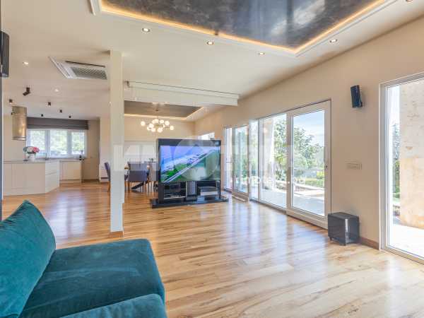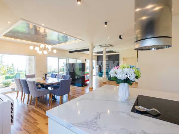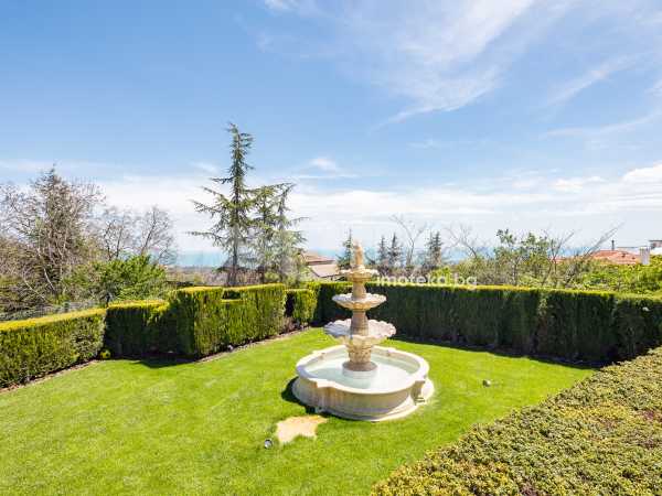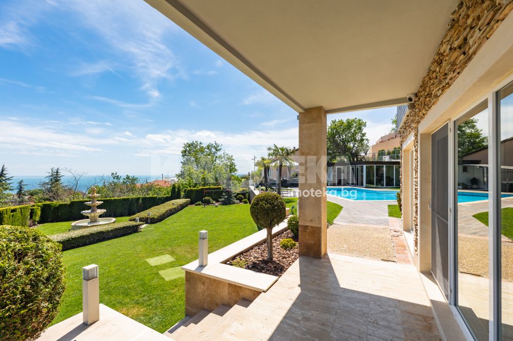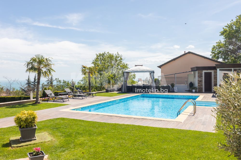 Имотът разполага още и с частен открит басейн, лятна кухня с мека мебел, закрит гараж за три автомобила плюс допълнителни външни паркоместа.