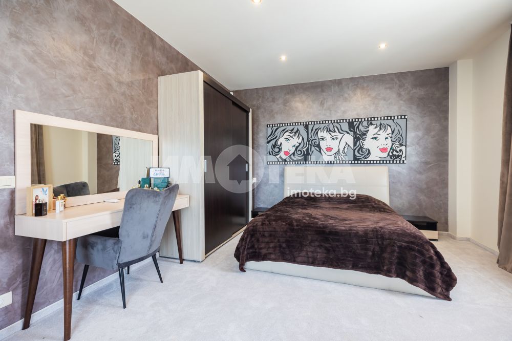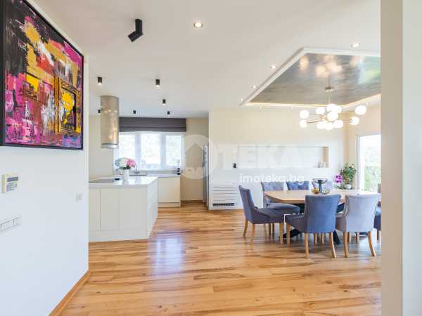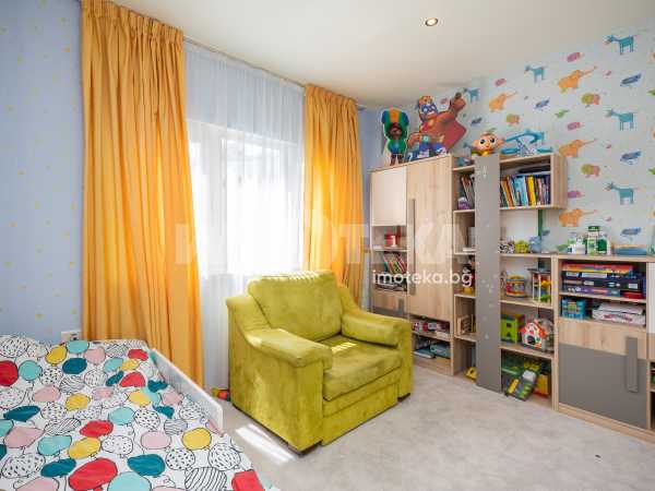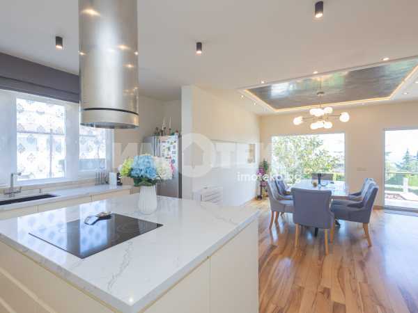 Голяма дневна с високи тавани и директен достъп до двор и басейн, кухня с остров и трапезария, напълно оборудвана с висок клас уреди с достатъчно пространство за семейни събирания. Четири просторни спални, изпълнени със светлина и уют, едната от тях със собствена баня и гардеробна, втора модерно оборудвана баня, тоалетна, перално помещение.