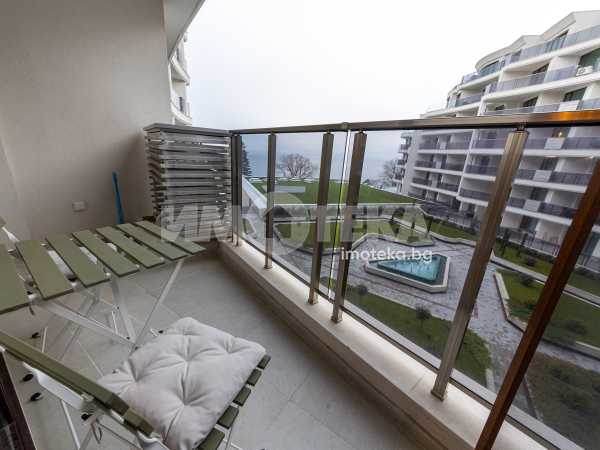 Имота се намира в компекс предлагащ удобства като зелена зона за разходки,басейни,спа зона,смарт контрол и др,на метри от плажа исъщевременно ена 10 мин. от центъра на града.